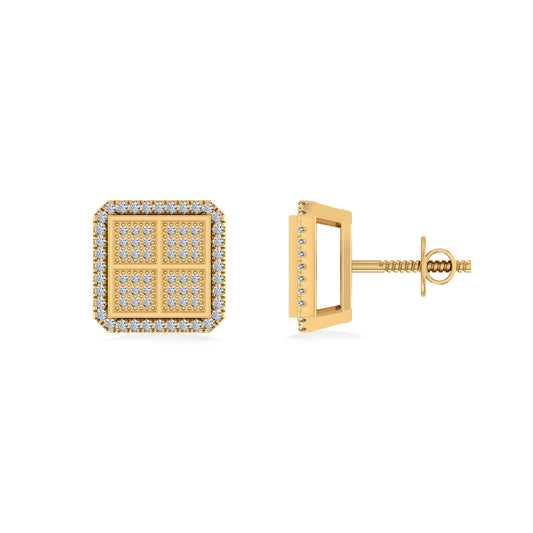 10K Yellow Gold Round Baguette Diamond Square Shape Designer Mens Stud Earring 1/3 Cttw