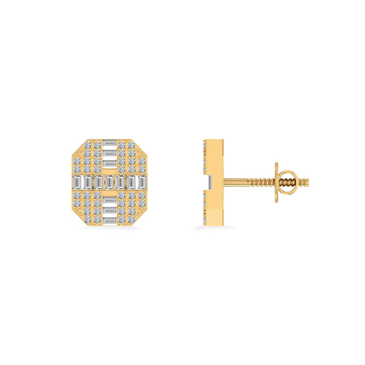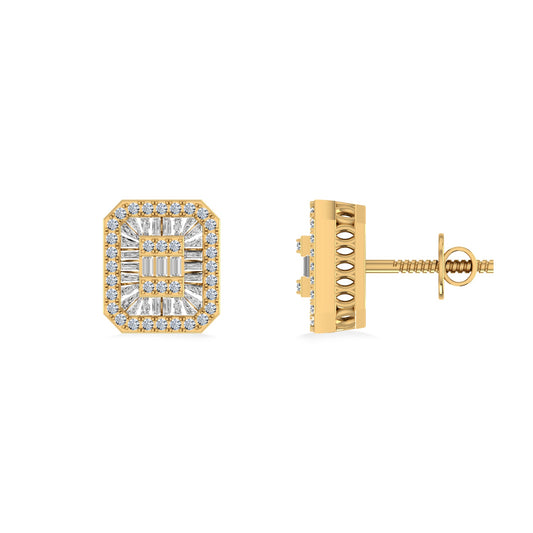 10K Yellow Gold Round Baguette Diamond Square Shape Designer Mens Stud Earring 3/8 Cttw
