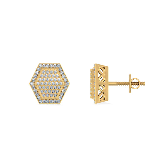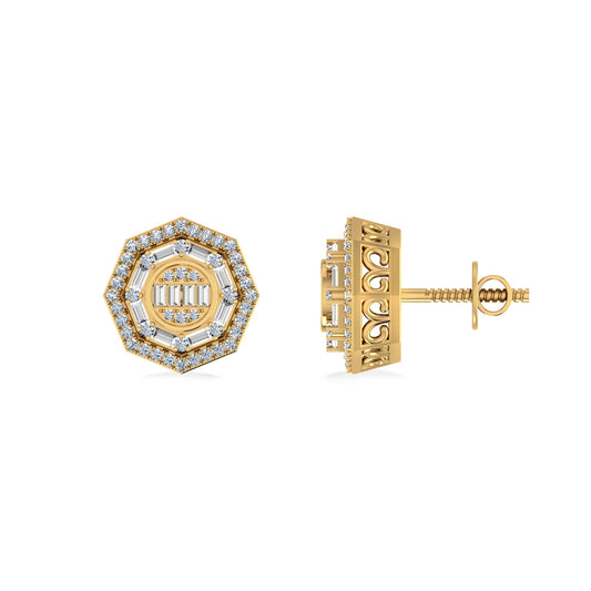 10K Yellow Gold Round Diamond Octagon Shape Designer Mens Stud Earring 1/4 Cttw