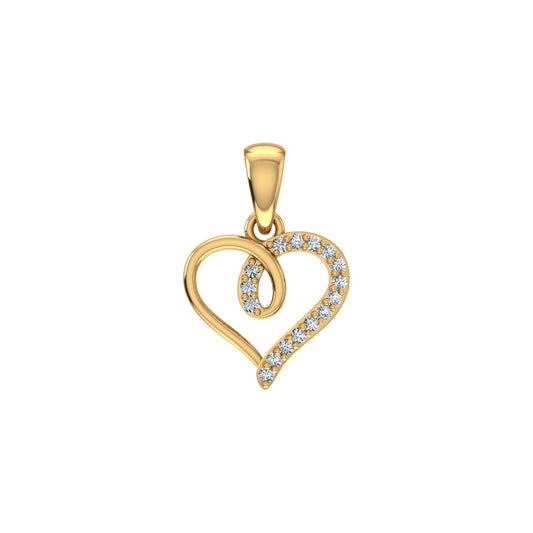 10K Yellow Gold Round Diamond O Letter Initial With Heart Pendant 1/10 Cttw