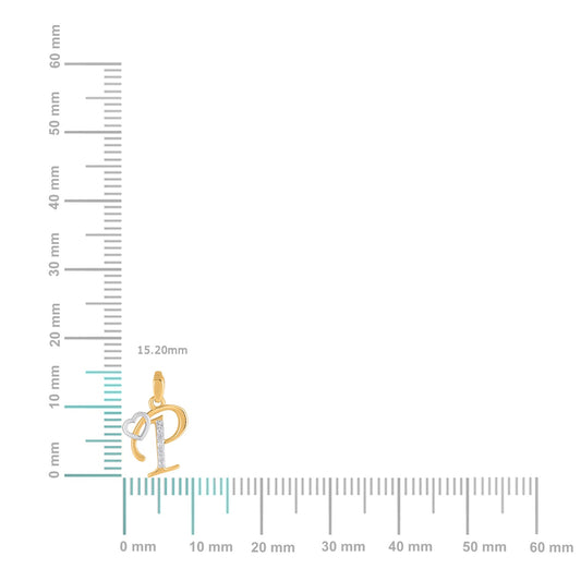10K Yellow Gold Round Diamond P Letter Initial With Heart Pendant 1/10 Cttw
