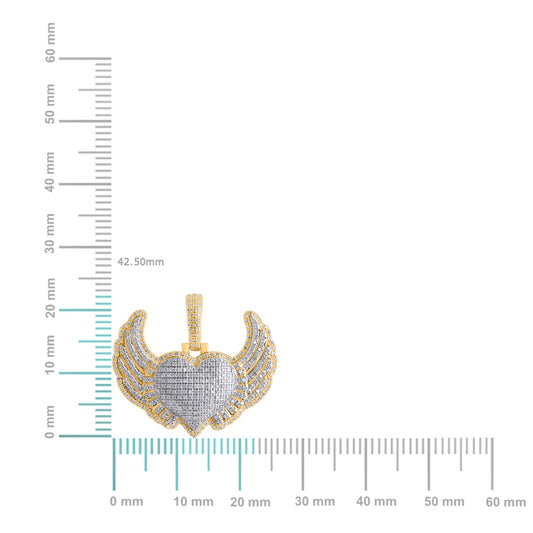 10K Yellow Gold Round Diamond Heart Wings Pendant 1-1/8 Cttw