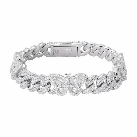 S.Silver Round Baguette Moissanite Butterfly Designer 7 Inch Bracelet RP+PP 5-3/4 Cttw