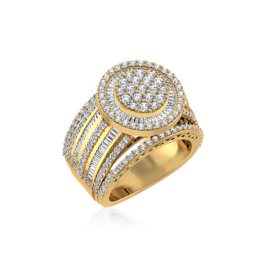 10K Yellow Gold Round Baguette Diamond Designer Sz 7 Head Ladies Ring 2-1/3 Cttw