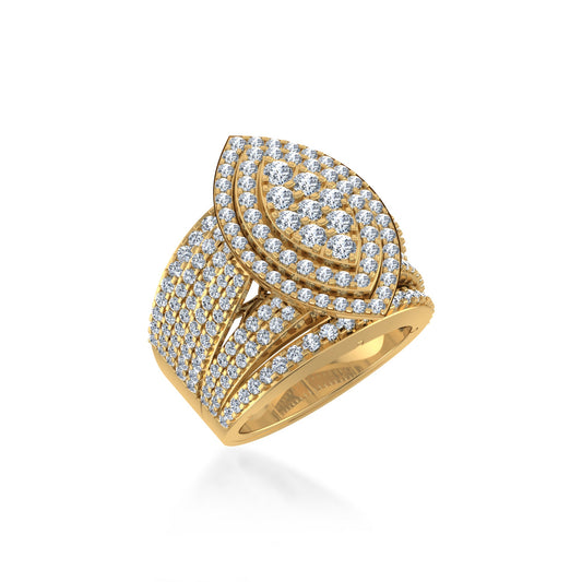 10K Yellow Gold Round Diamond Marquise Shape Sz 7 Head Ladies Ring 2-7/8 Cttw