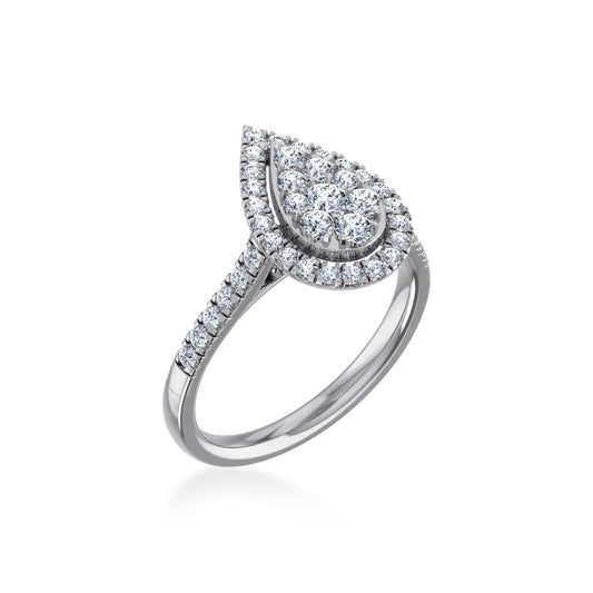 14K White Gold Round Diamond Pear Shape Womens Designer Ring 7/8 Cttw