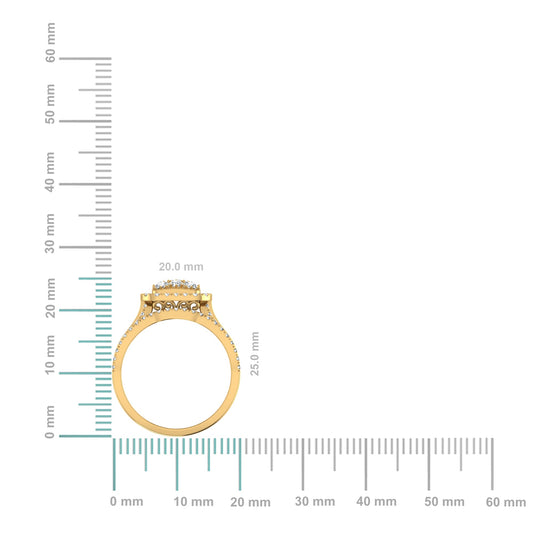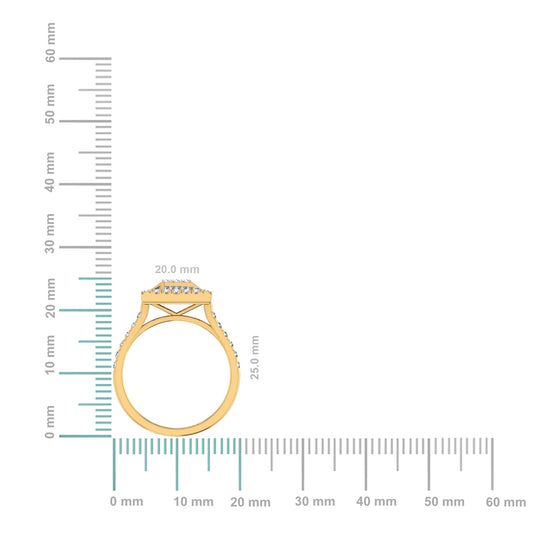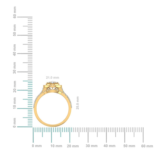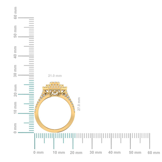 10K Yellow Gold Round Diamond Womens Square Shape Bridal Ring 7/8 Cttw