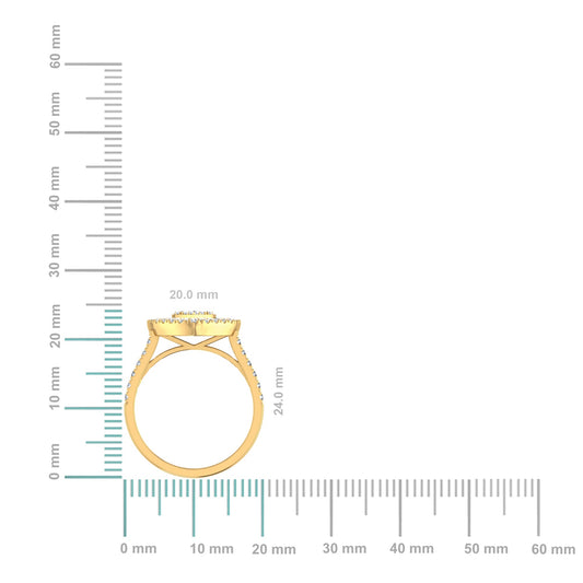 14K Yellow Gold Round Baguette Diamond Pear Shape Womens Designer Ring 3/4 Cttw