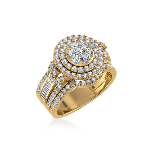 10K Yellow Gold Round Baguette Diamond Womens Designer Bridal Ring 1-5/8 Cttw