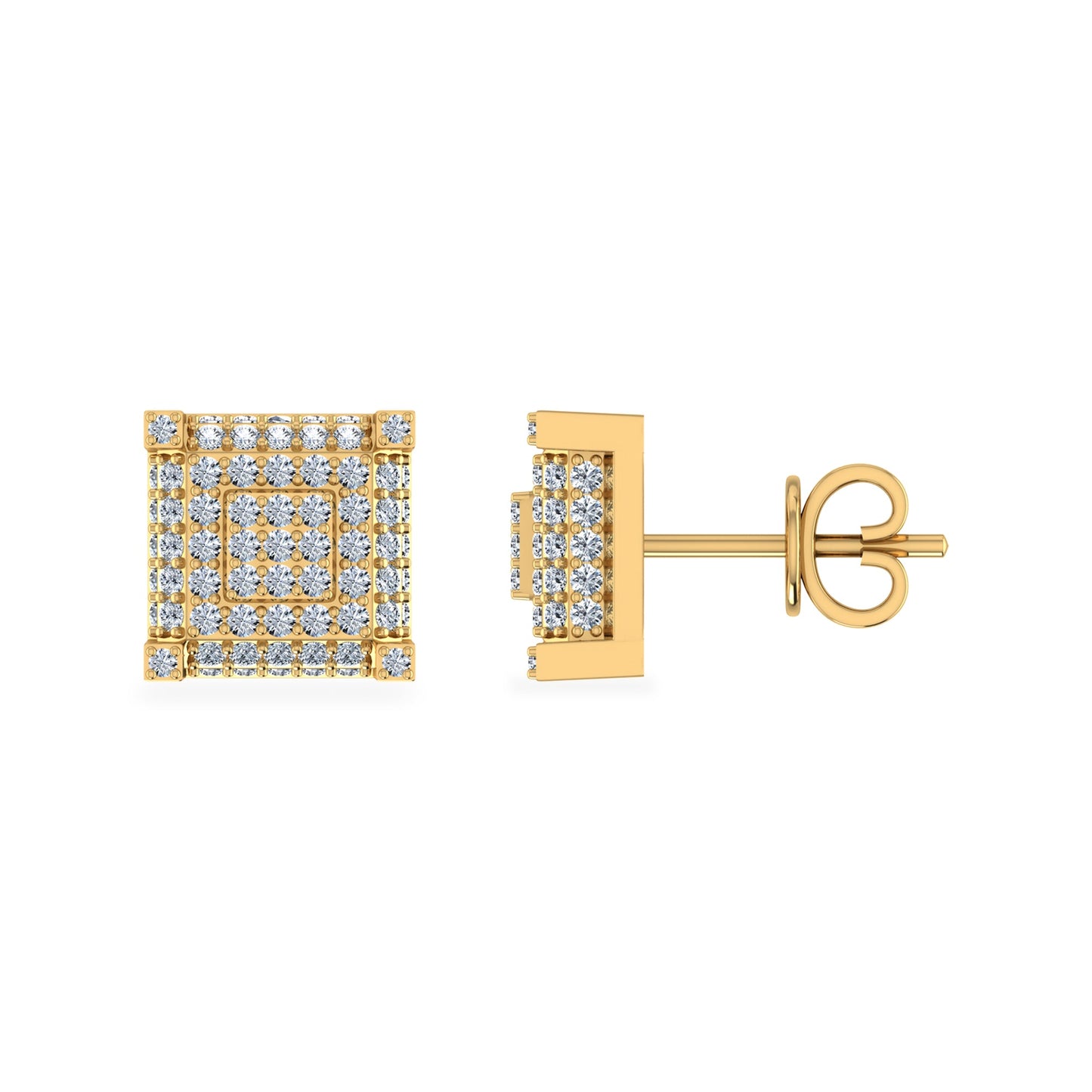 10K Yellow Gold Round Diamond Square Shape Stud Earrings 1/2 Cttw