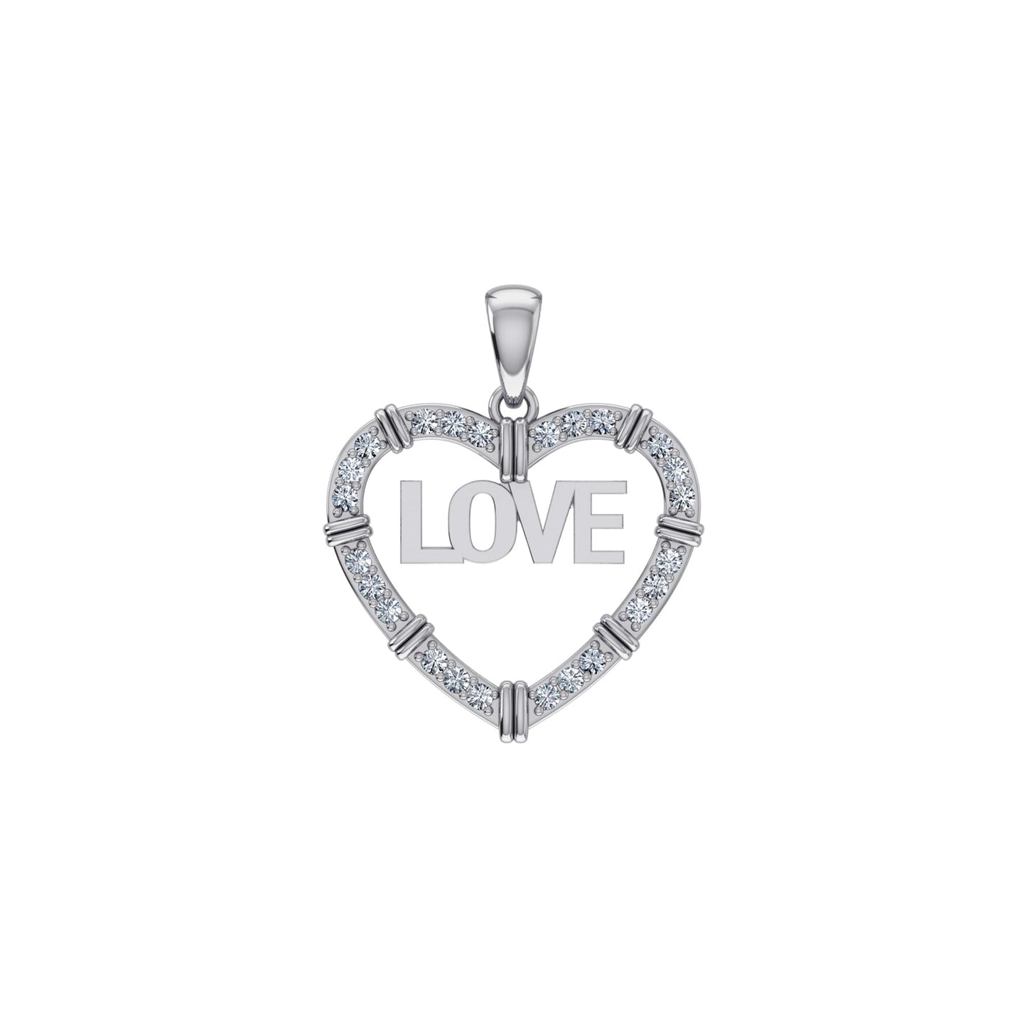 10K White Gold Round Diamond Womens Love Heart Pendant 1/4 Cttw