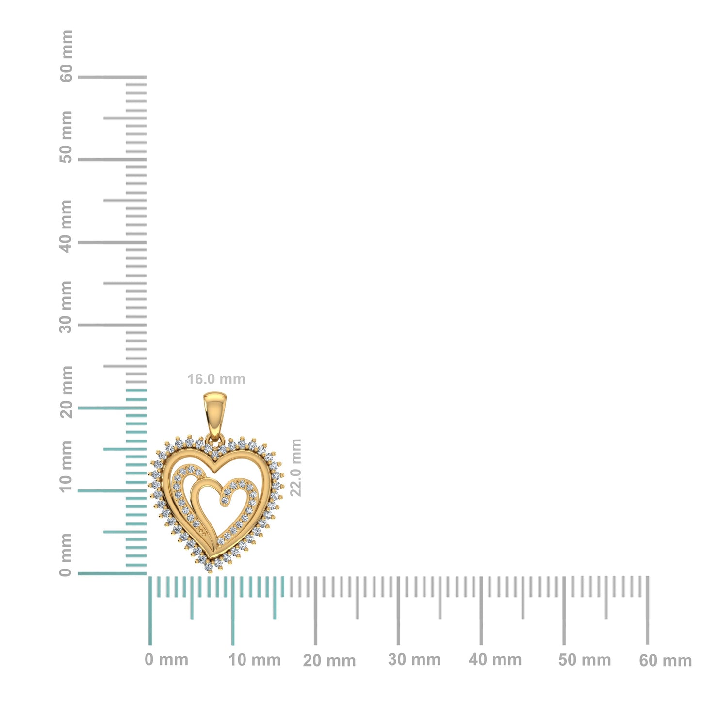 10K Yellow Gold Round Diamond Womens Double Heart Pendant 1/4 Cttw