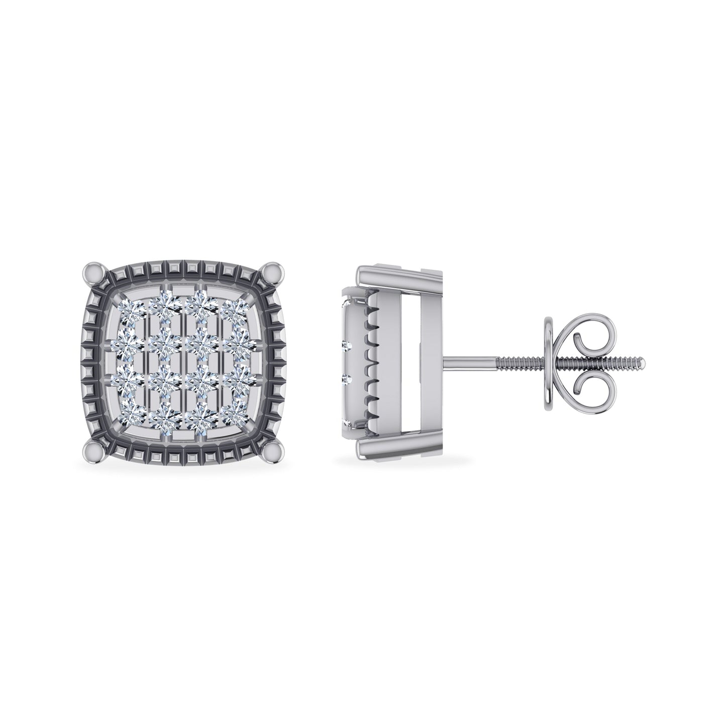 10K White Gold Square Shape Diamond Stud Earrings 1/10 Cttw