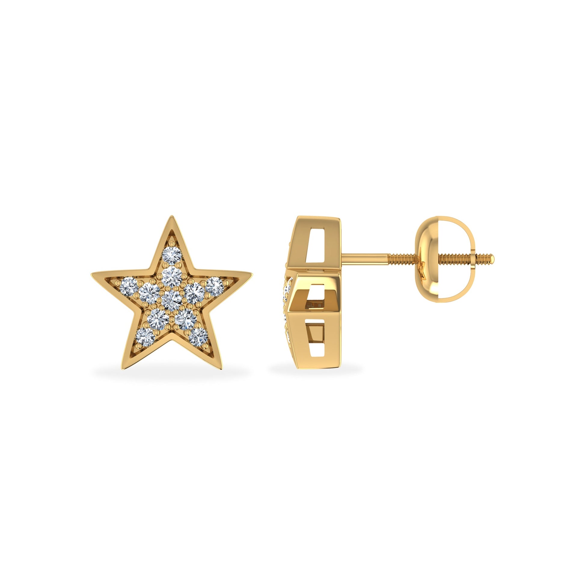 10K Yellow Gold Round Diamond Star Studs Designer Stud Earrings 1/20 Cttw