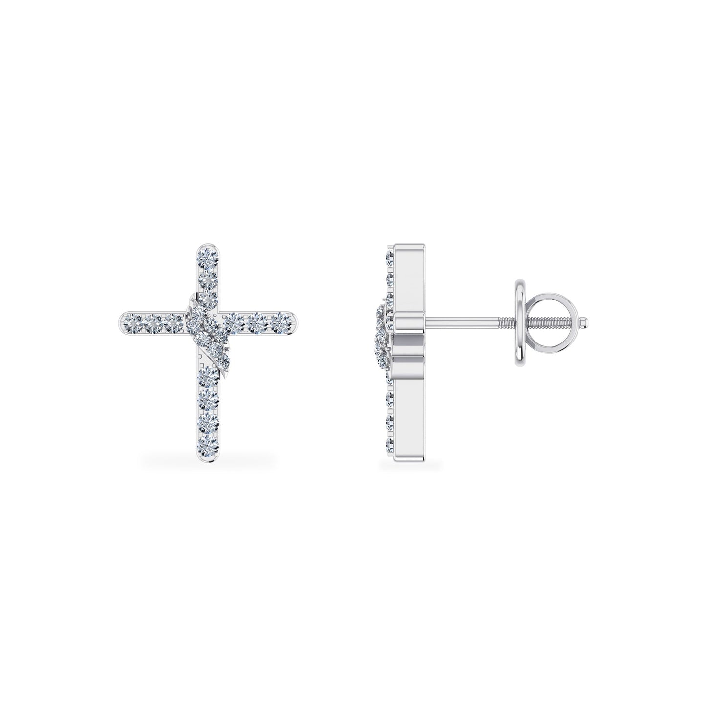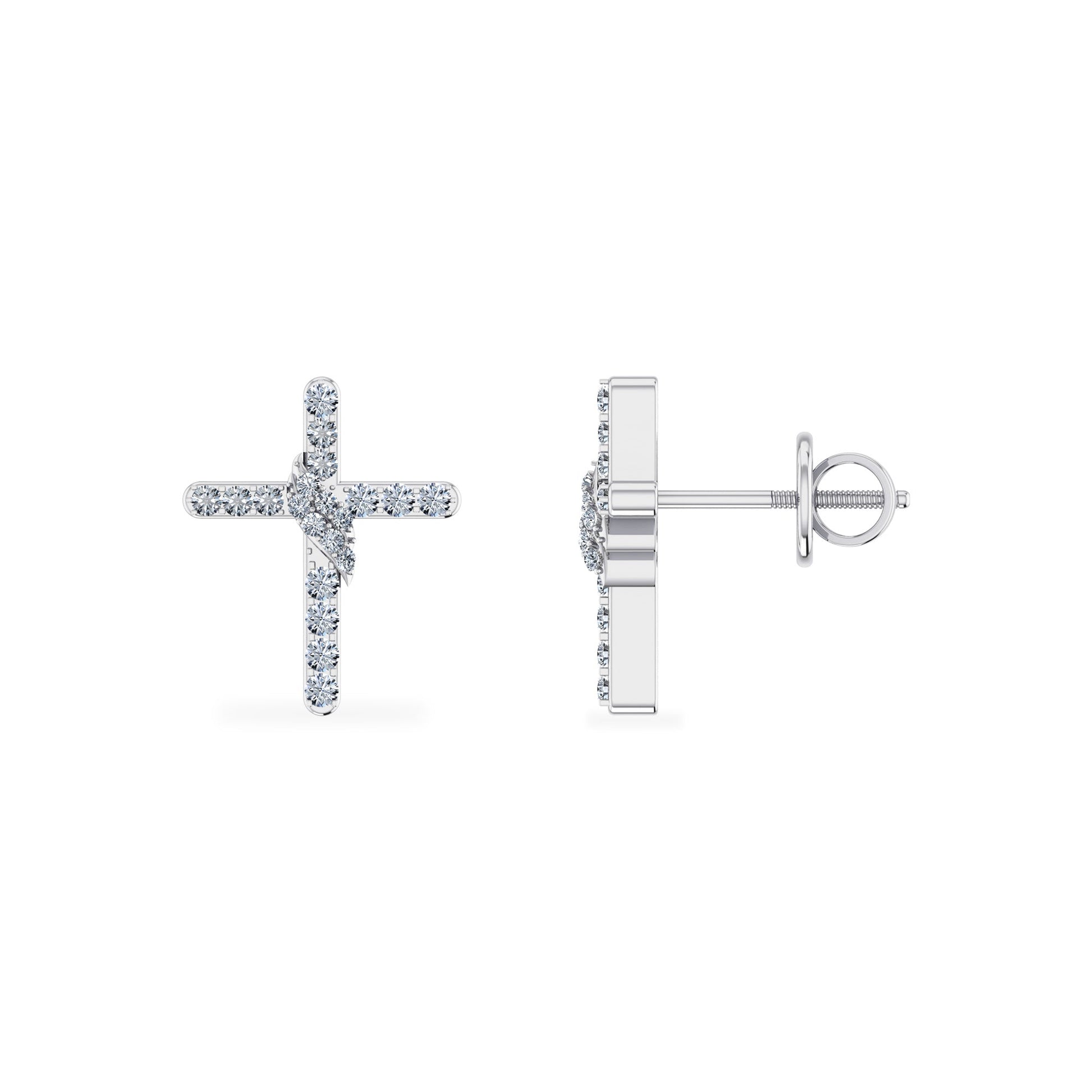 10K White Gold Round Diamond Cross Religious Stud Earrings 1/6 Cttw