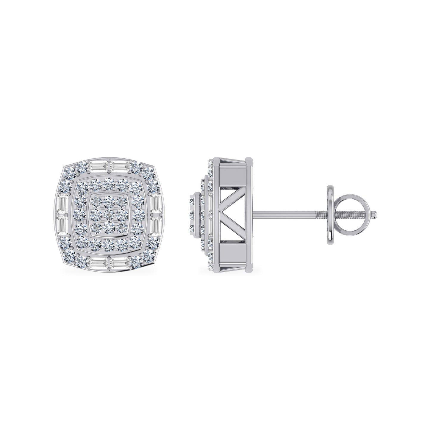 10K White Gold Round Diamond Square Shape Stud Earrings 5/8 Cttw
