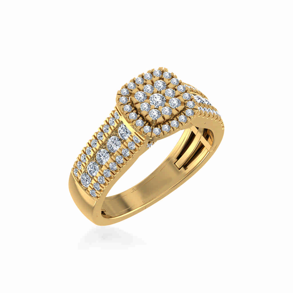 10K Yellow Gold Round Diamond Halo Bridal Cluster Ring 7/8 Cttw