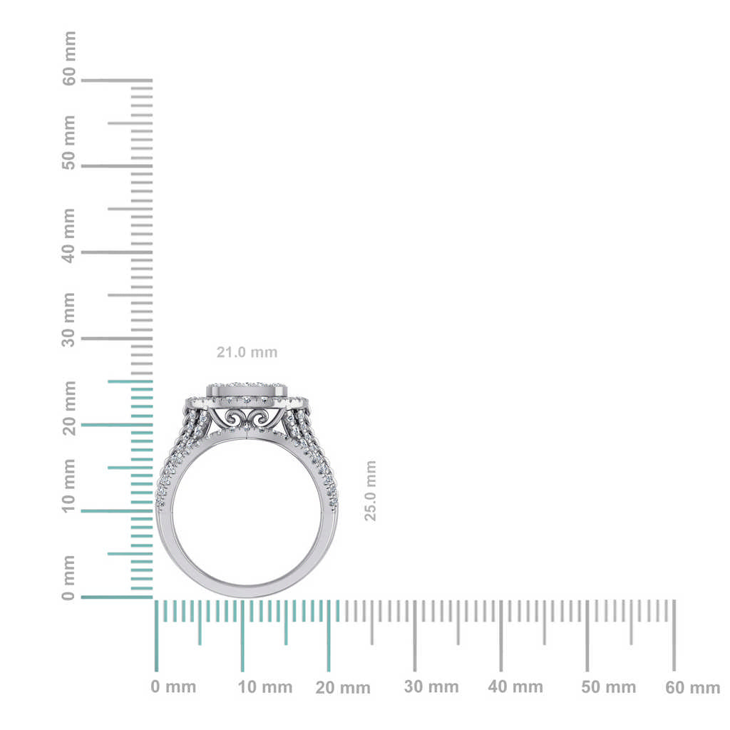 10K White Gold Round Diamond Halo Big Bridal Cluster Ring 1-5/8 Cttw