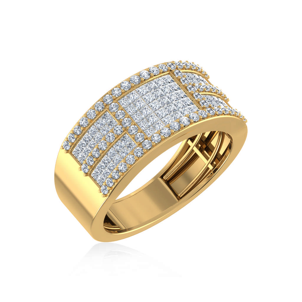 10K Yellow Gold Princess Diamond Mens Invisible Band 1-7/8 Cttw