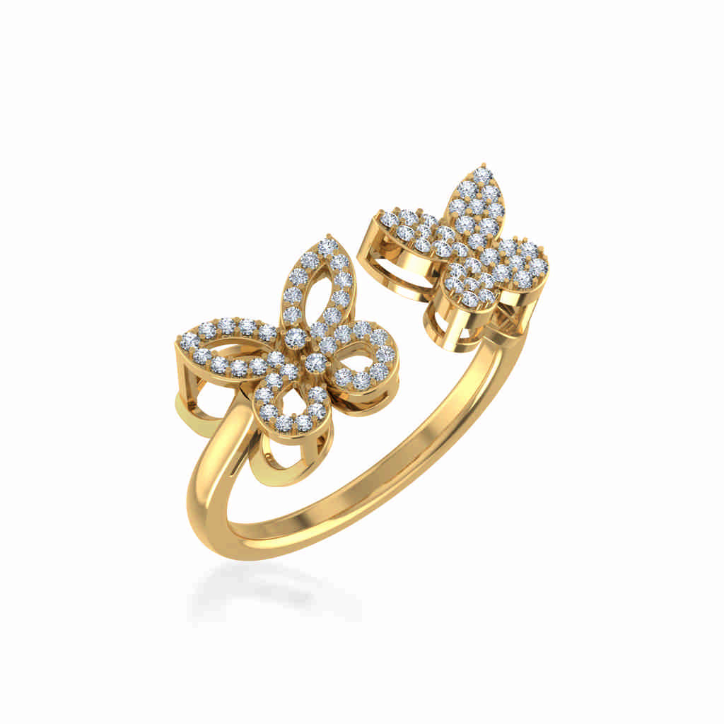 10K Yellow Gold Womens Round Diamond Butterfly Cluster Top Open Ring 1/4 Cttw