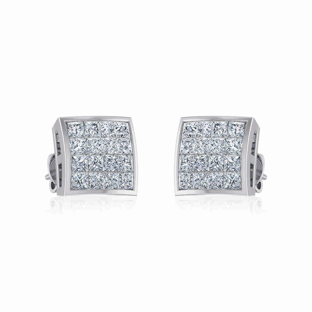 10K White Gold Mens Princess Diamond Square Stud Earrings 1/2 Cttw