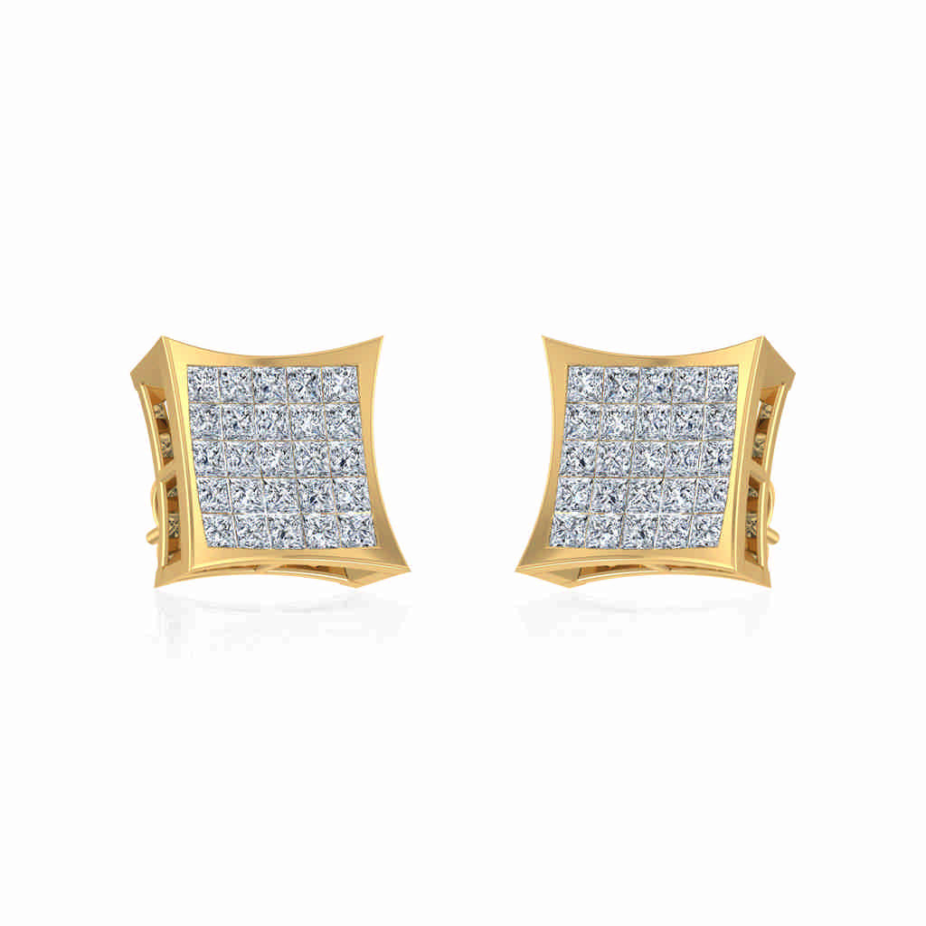 10K Yellow Gold Mens Princess Diamond Square Stud Earrings 1 Cttw