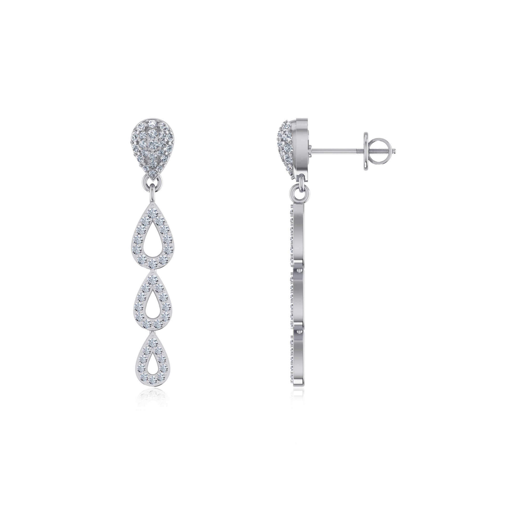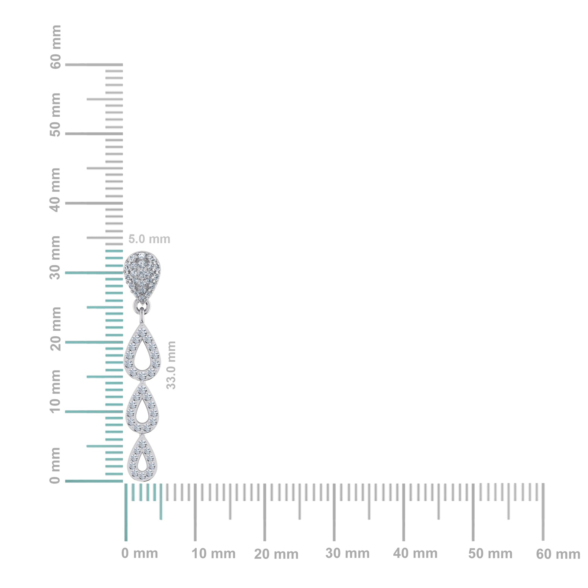 10K White Gold Round Diamond Drop Shape Dangling Earrings 3/4 Cttw