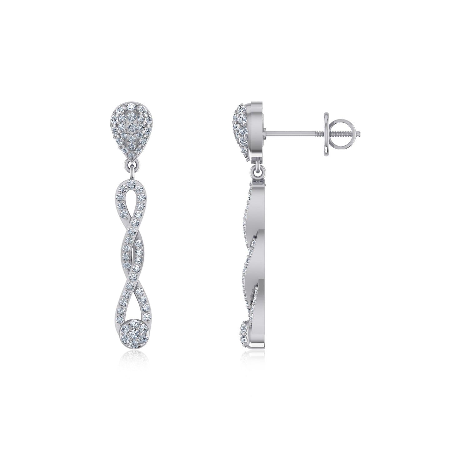 10K White Gold Round Diamond Cluster Infinity Floral Dangling Earrings 3/4 Cttw