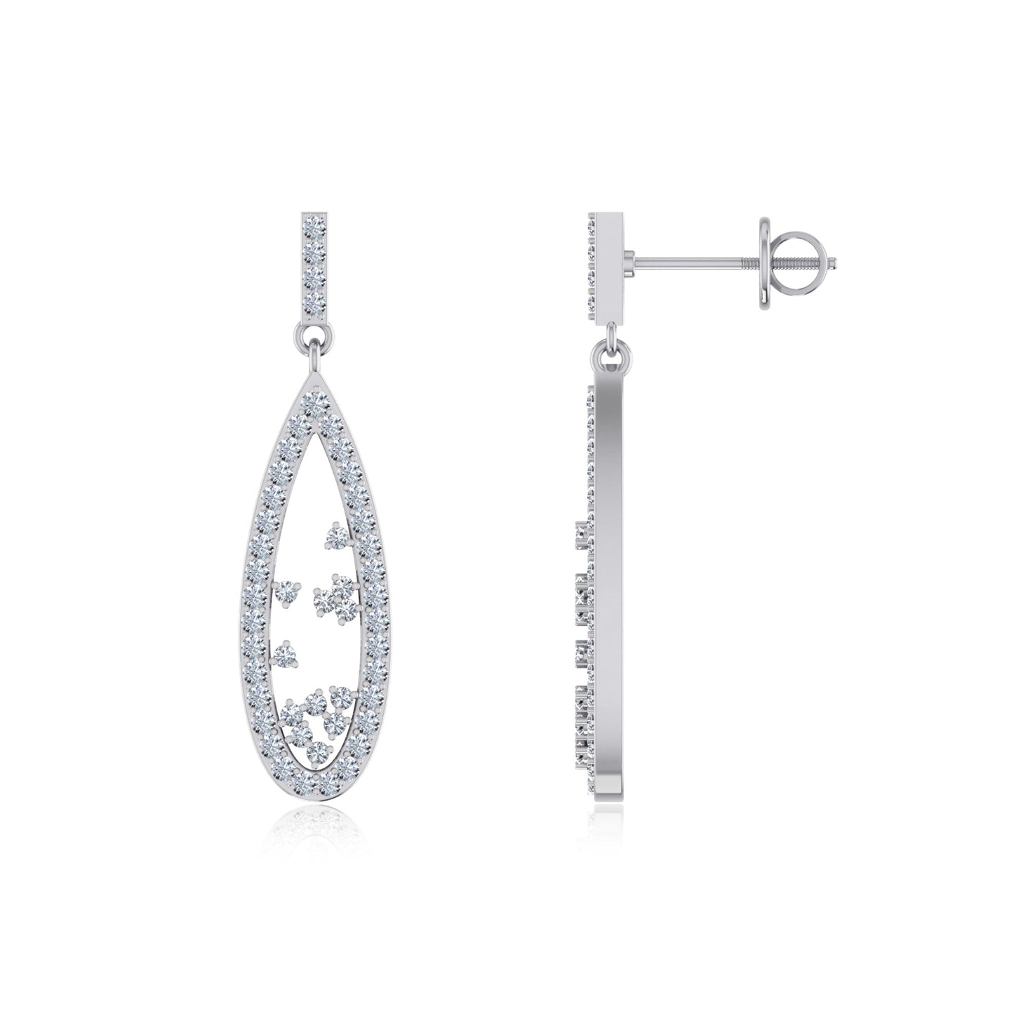 10K White Gold Round Diamond Designer Dangling Earrings 5/8 Cttw