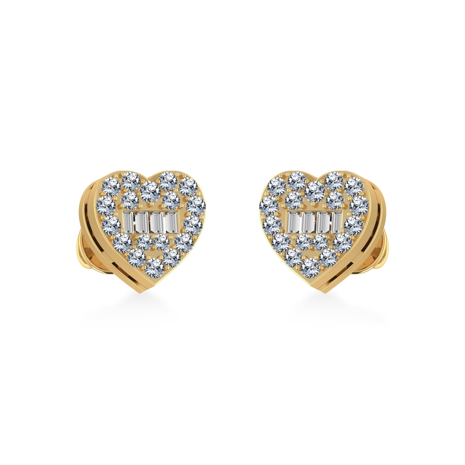 10K Yellow Gold Round Baguette Diamond Heart Shape Cluster Stud Earrings 1/5 Cttw