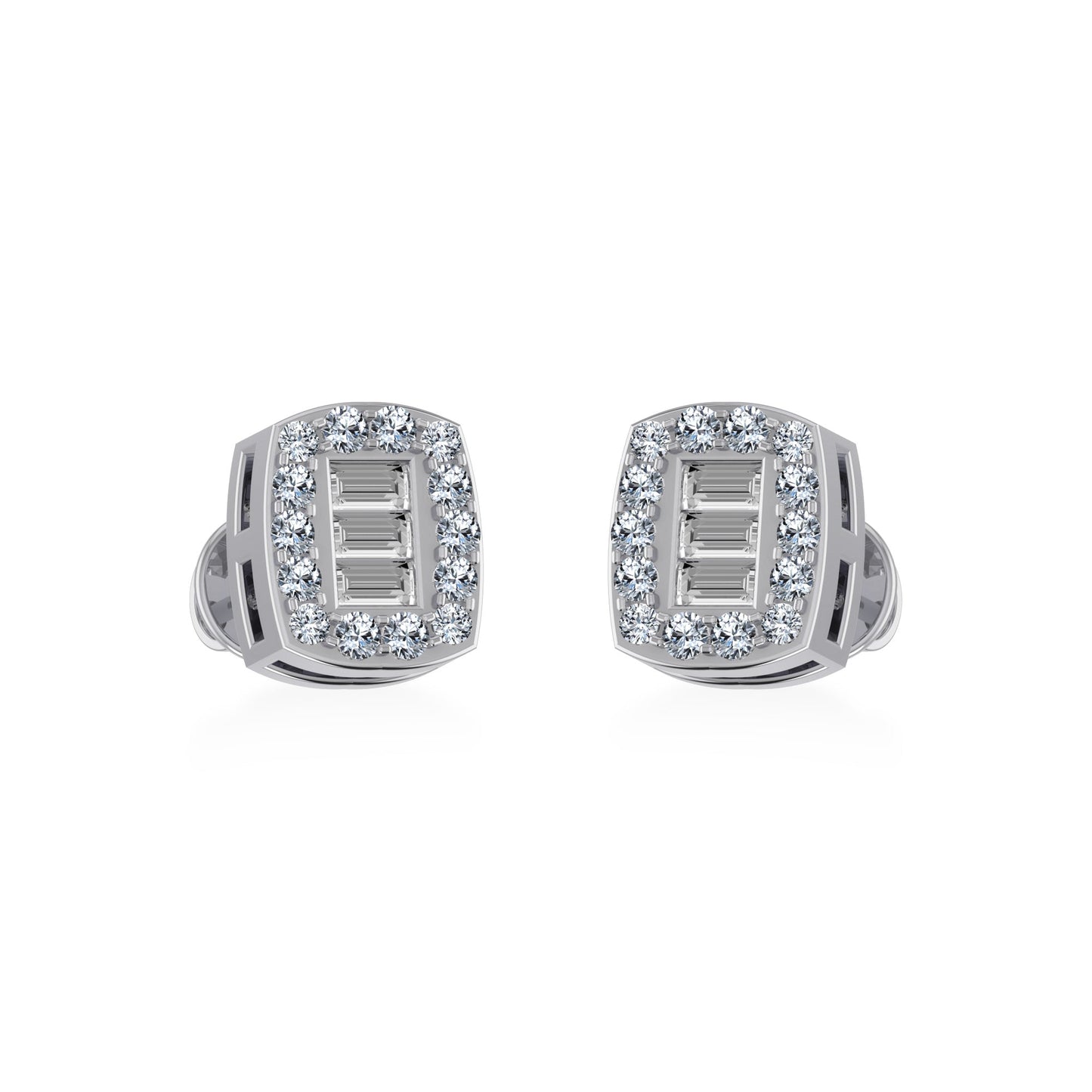 10K White Gold Round Baguette Diamond Square Shape Stud Earrings 1/5 Cttw