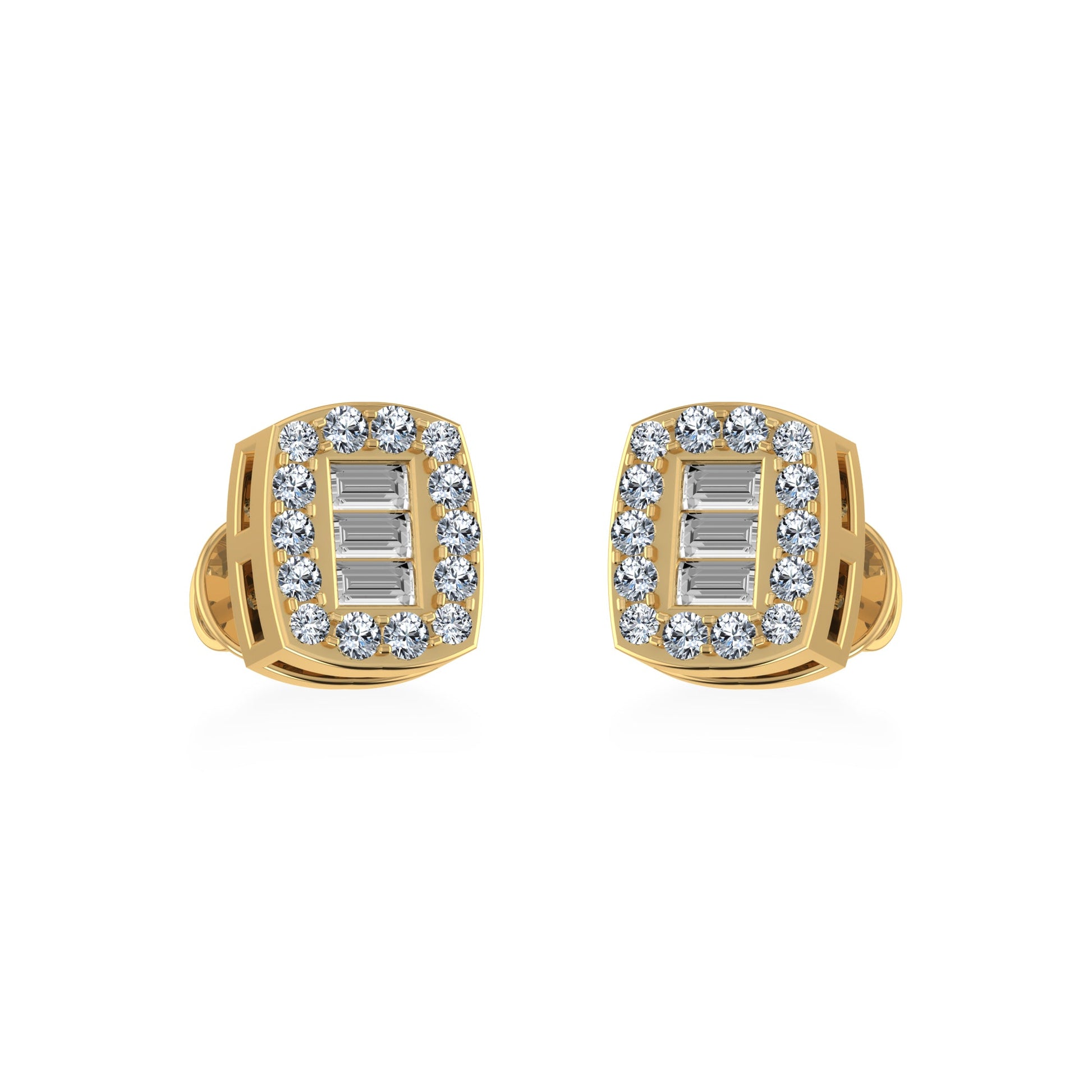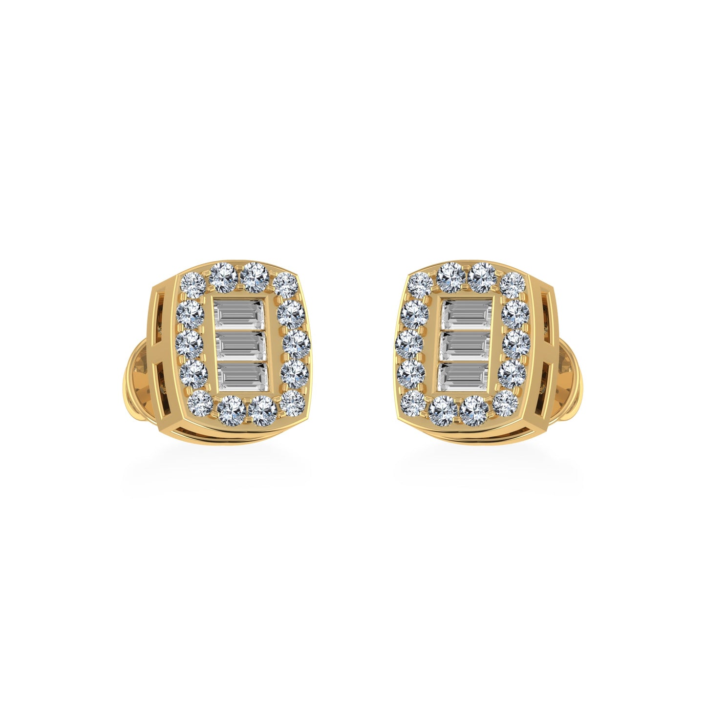 10K Yellow Gold Round Baguette Diamond Stud Earring 1/5 Cttw