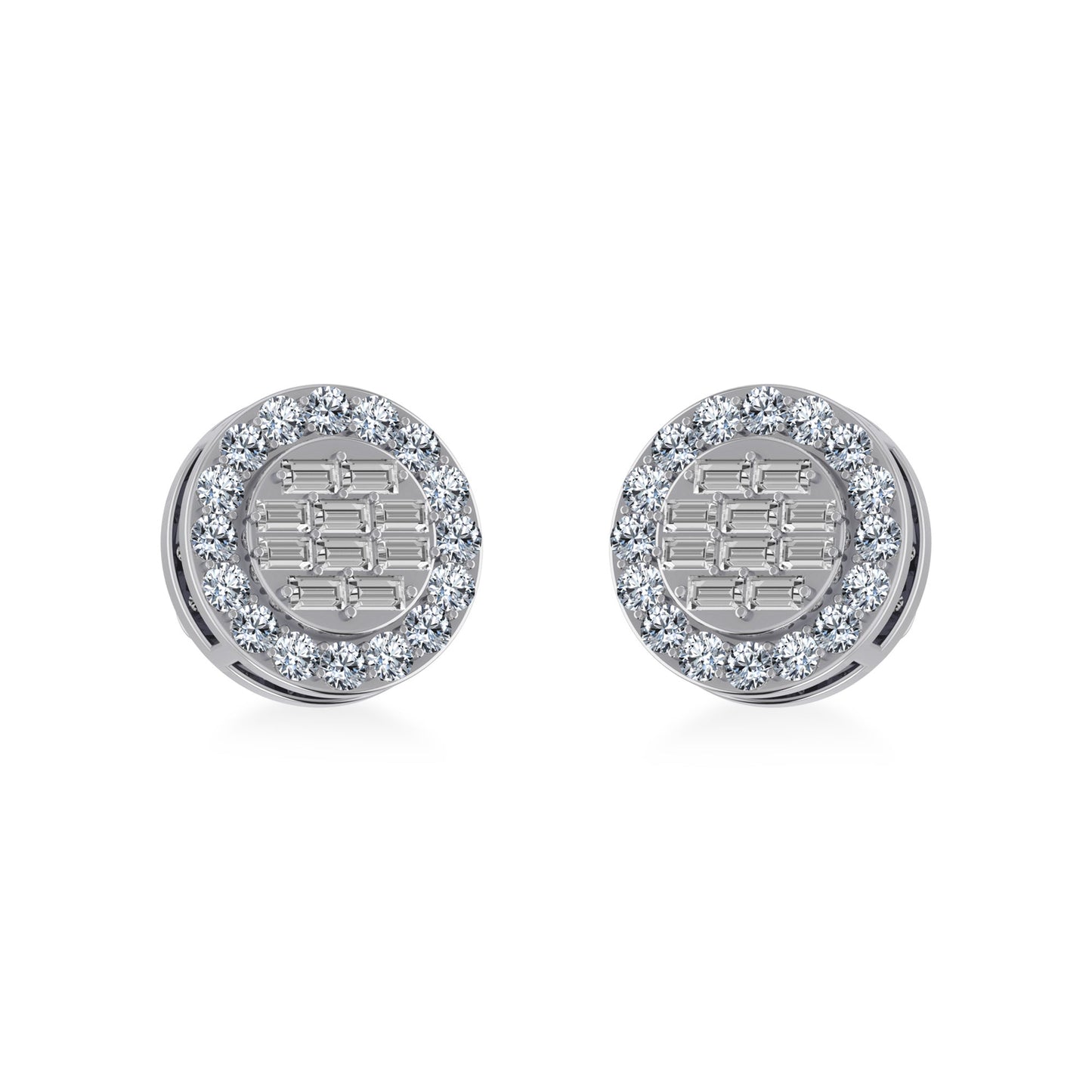 10K White Gold Round Baguette Diamond Stud Earring 1/2 Cttw