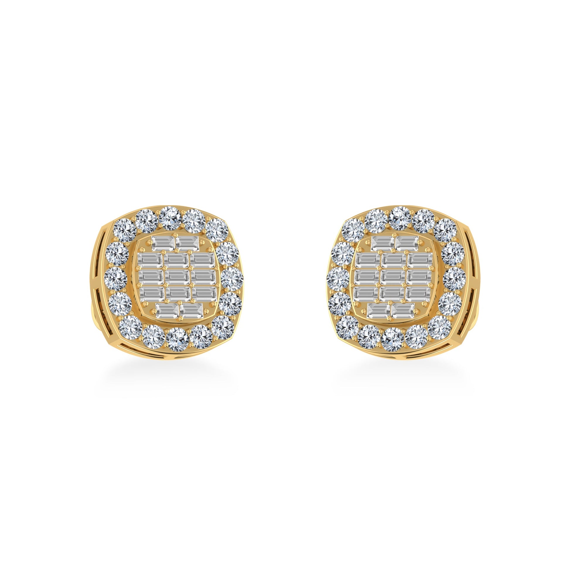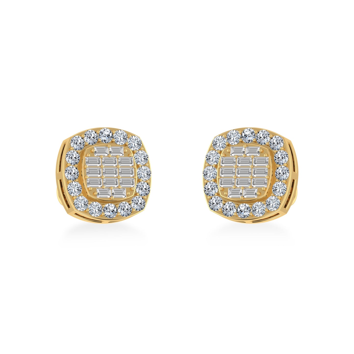 10K Yellow Gold Round Baguette Diamond Stud Earrings 5/8 Cttw