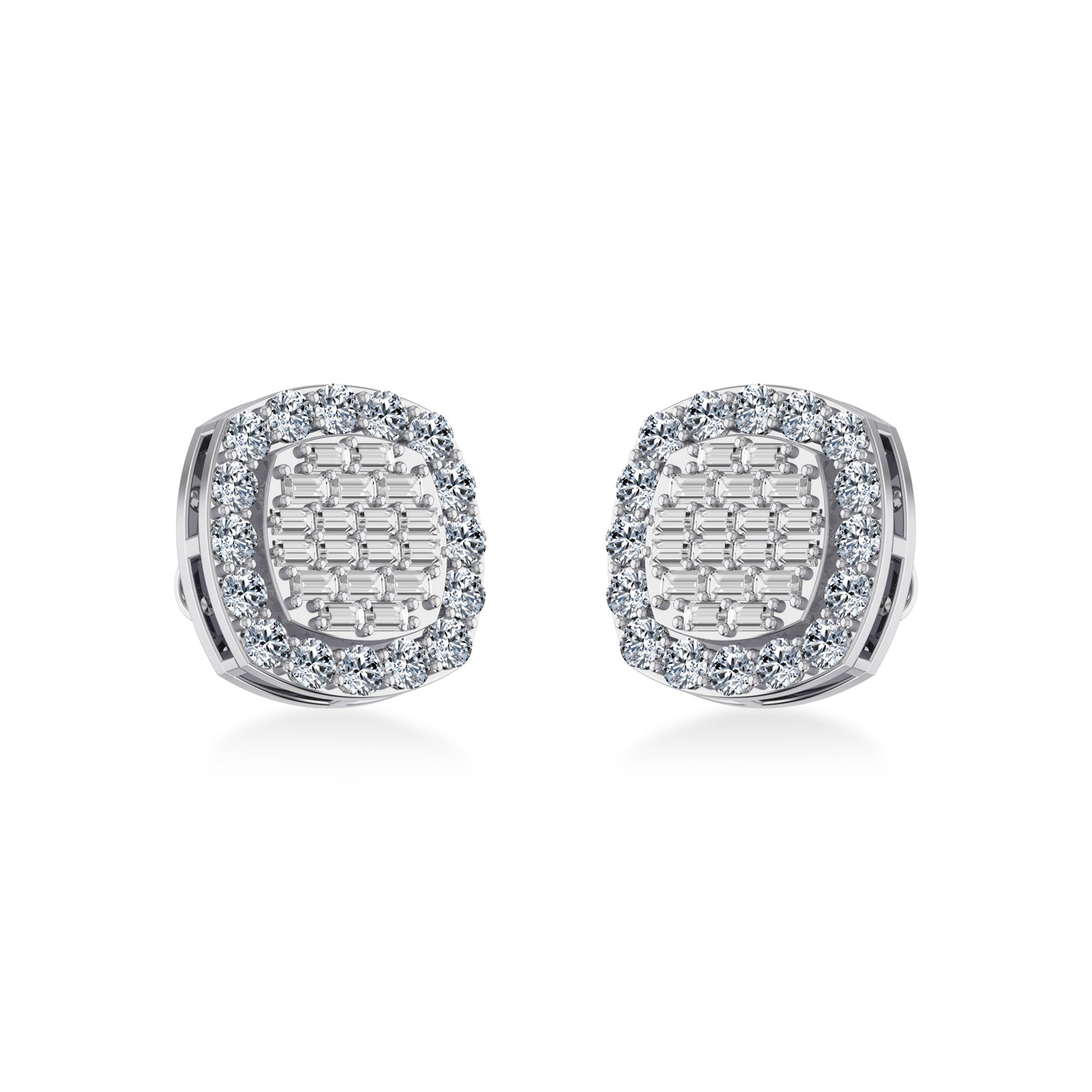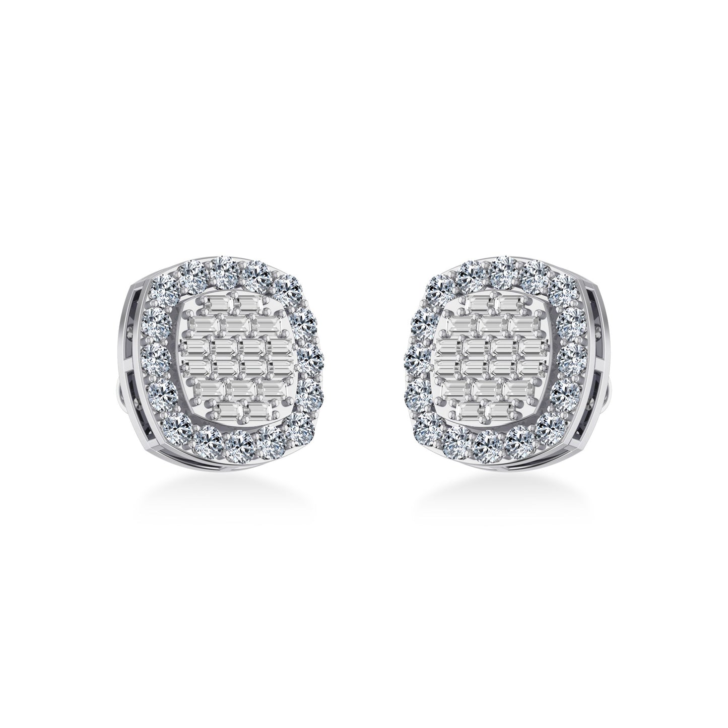10K White Gold Round Baguette Diamond Stud Earring 1 Cttw