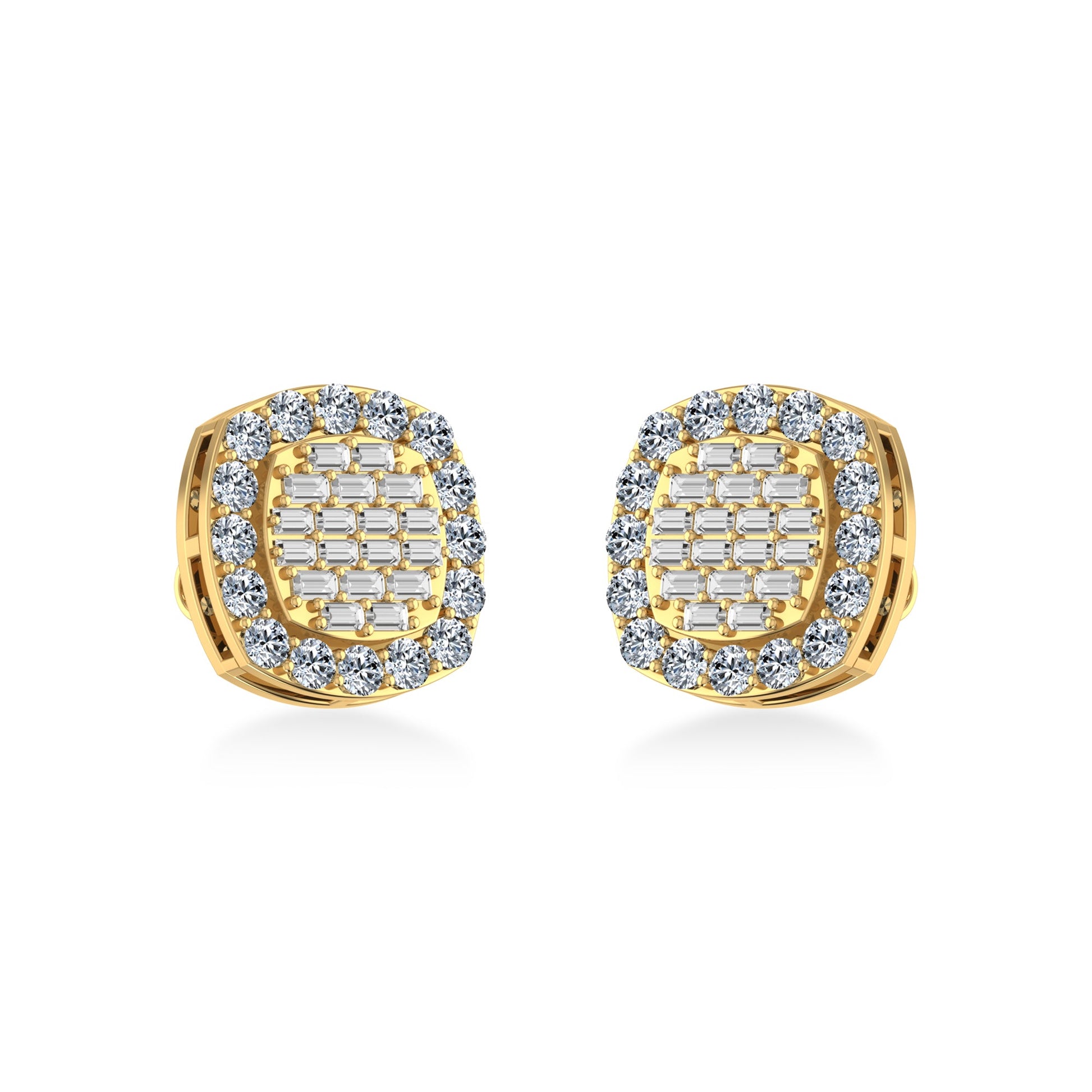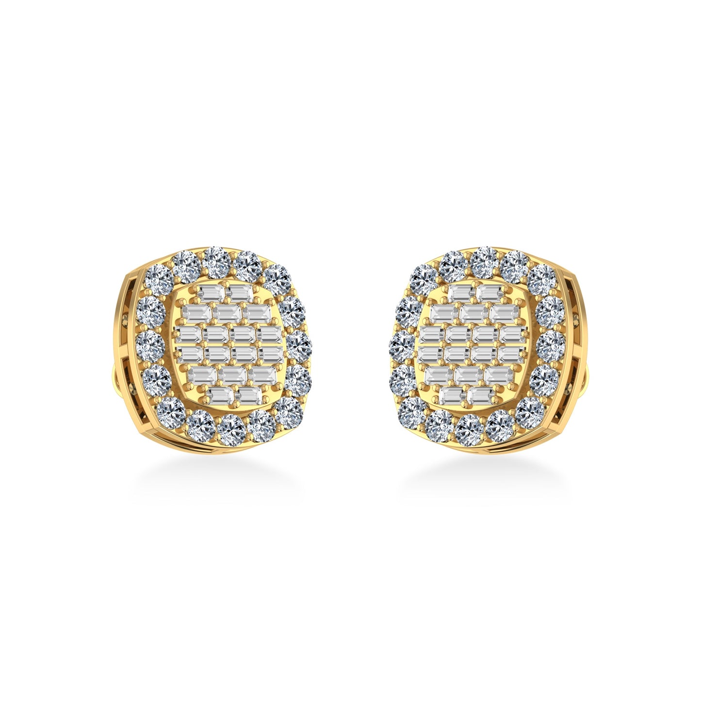 10K Yellow Gold Round Baguette Diamond Stud Earrings 1 Cttw