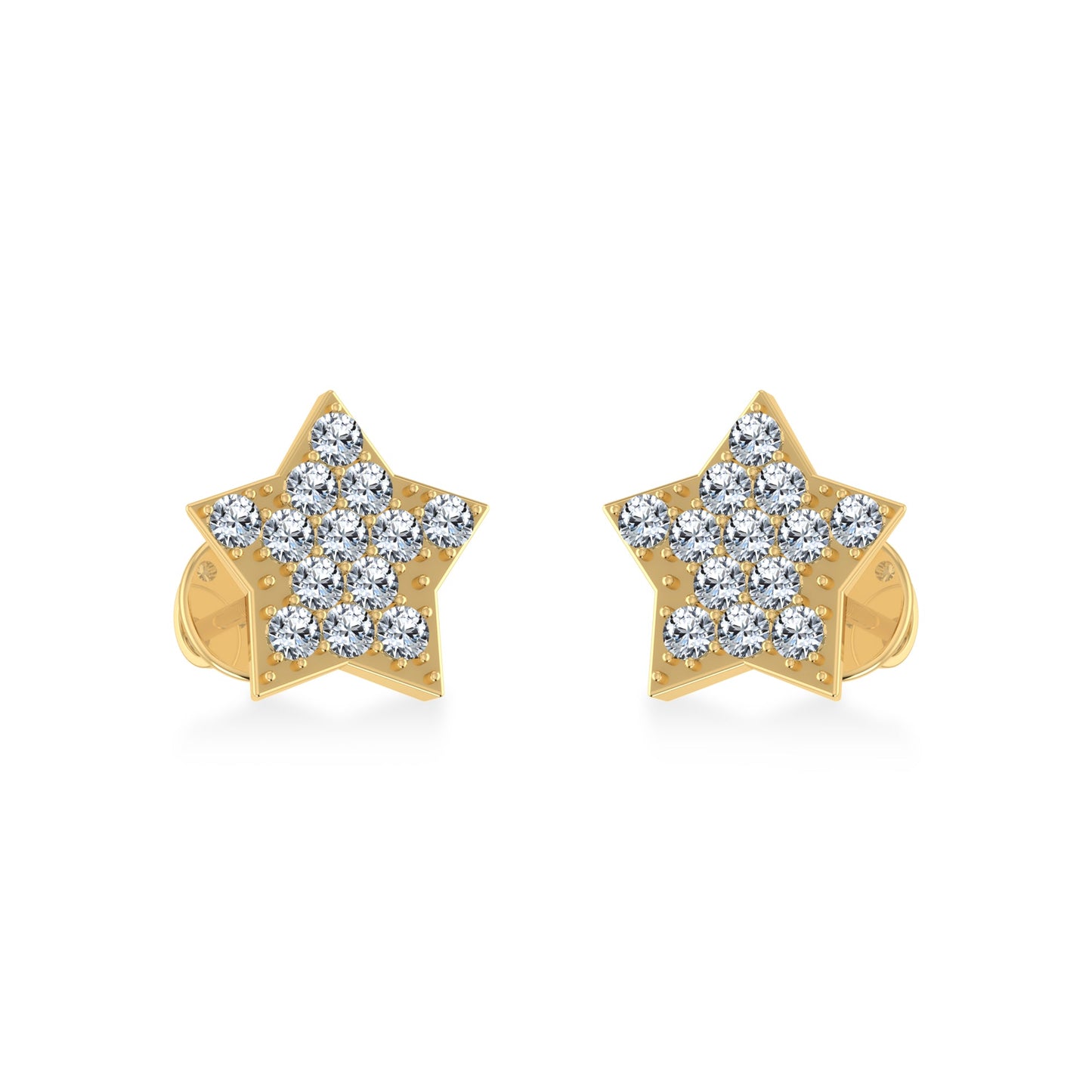 10K Yellow Gold Round Diamond Star Stud Earring 1/8 Cttw