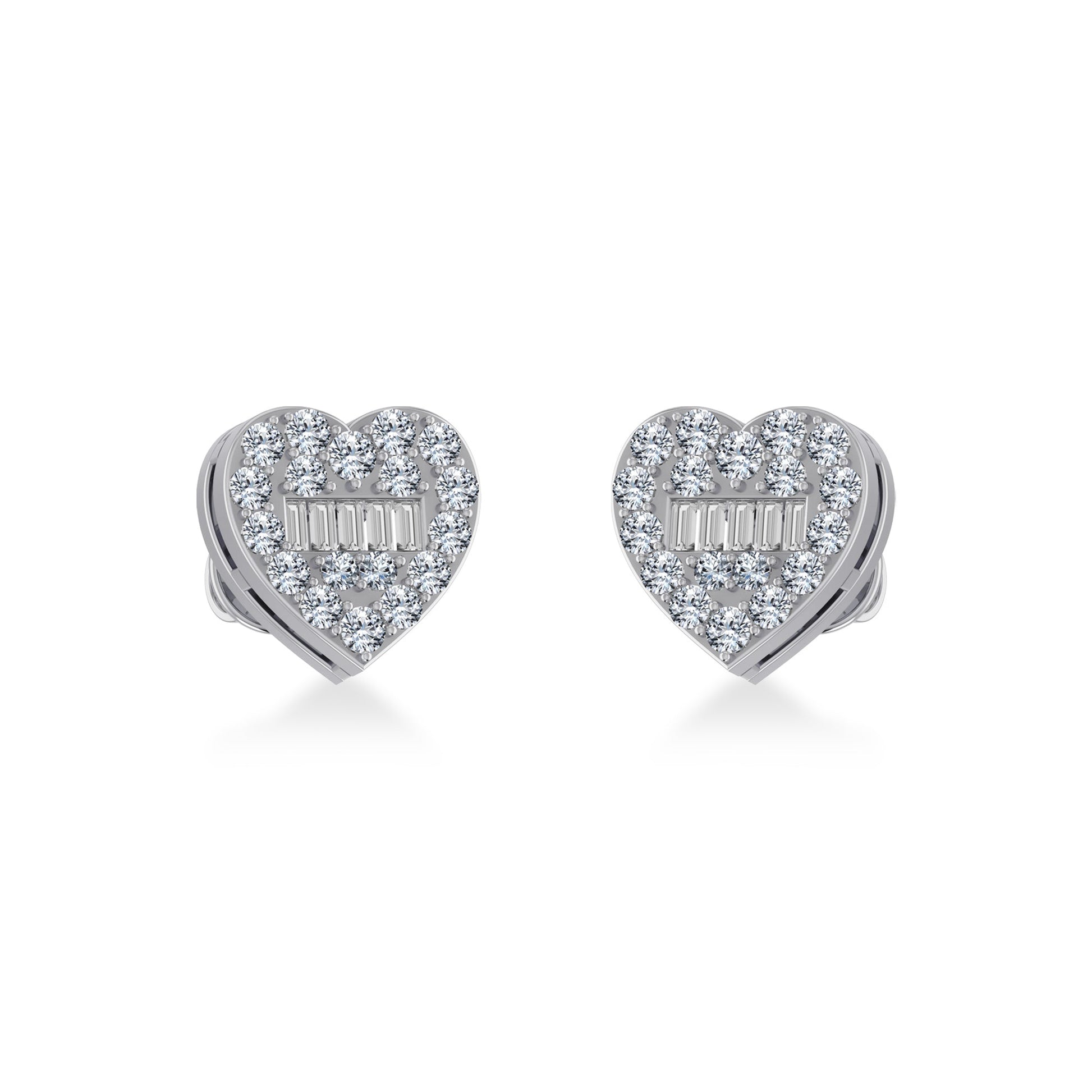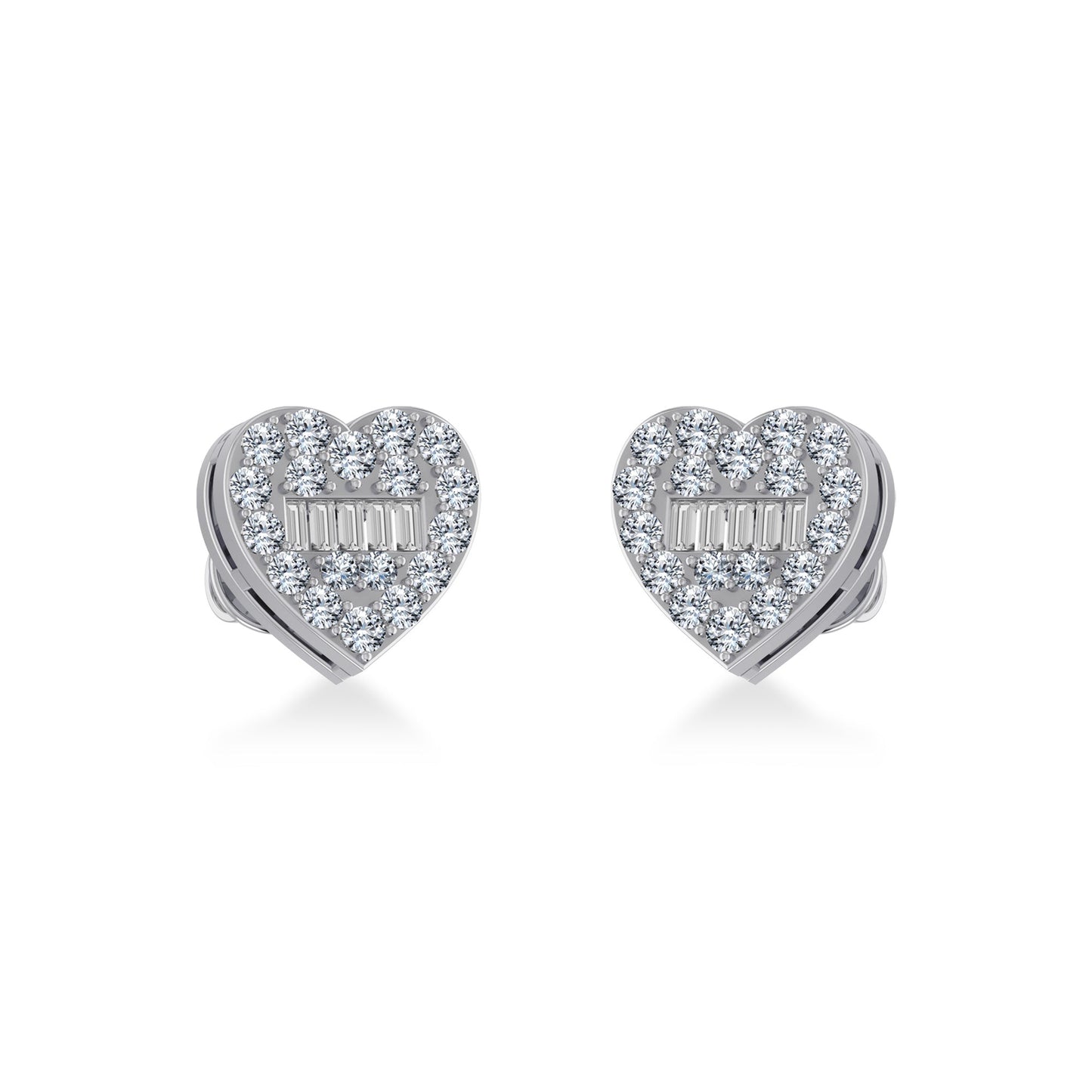 14K White Gold Round Baguette Diamond Heart Shape Cluster Stud EarRing 3/8 Cttw