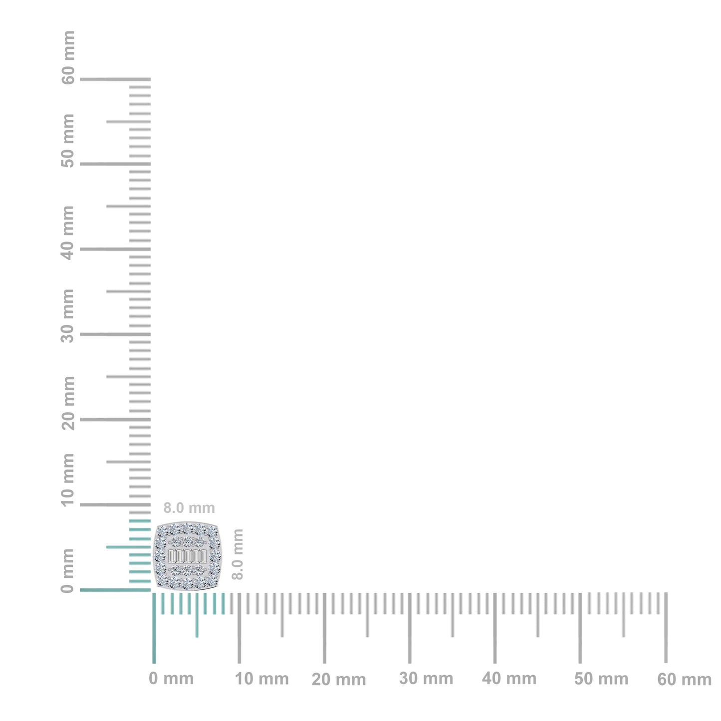 14K White Gold Round Baguette Diamond Square Shape Cluster Stud EarRing 1/2 Cttw