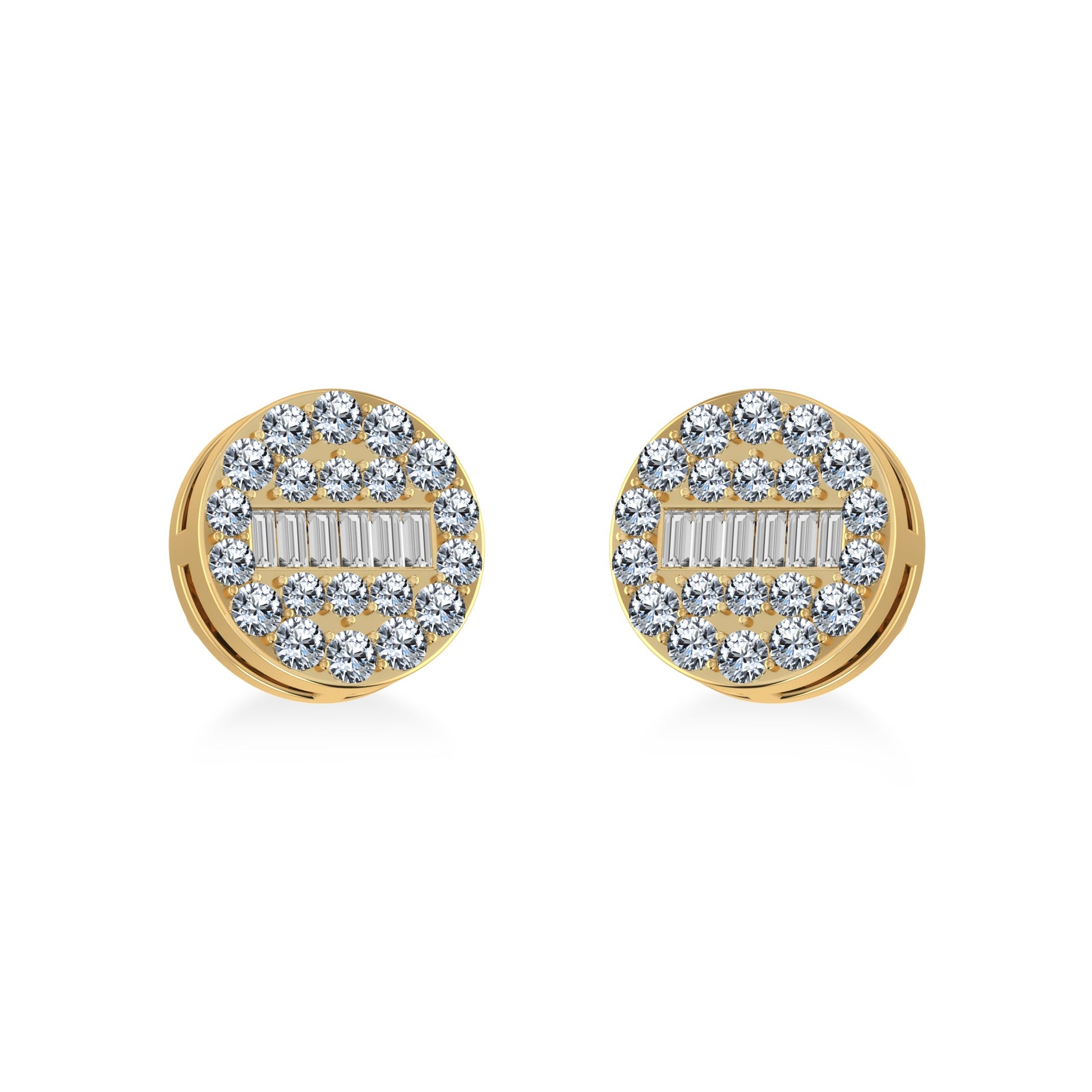 14K Yellow Gold Round Baguette Diamond Stud Earrings 3/8 CTTW