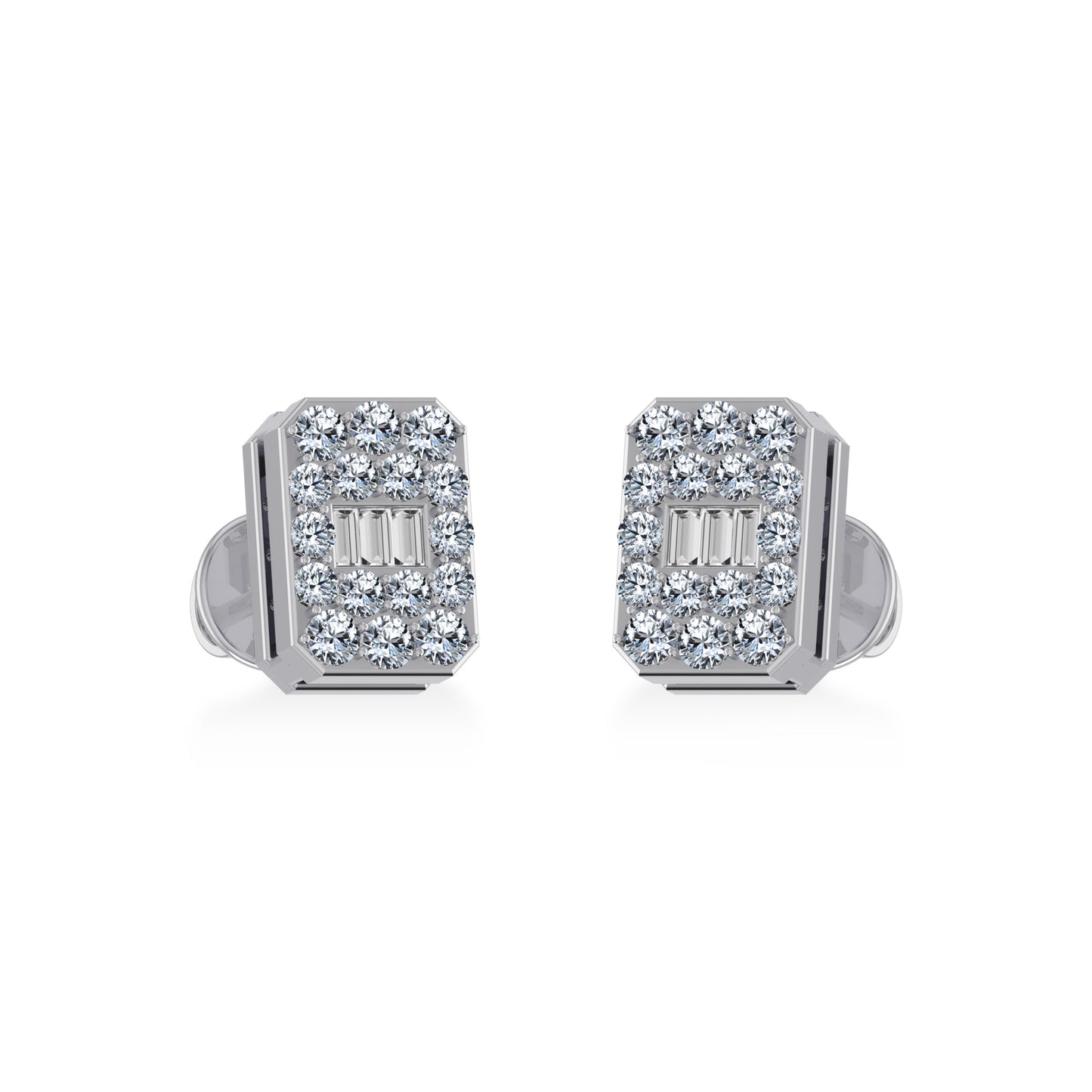 14K White Gold Baguette Diamond Emerald Shape Cluster Stud EarRing 1/5 Cttw