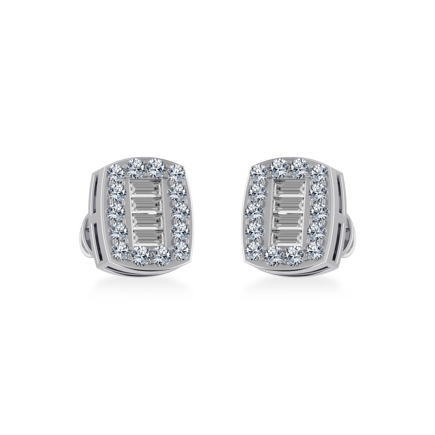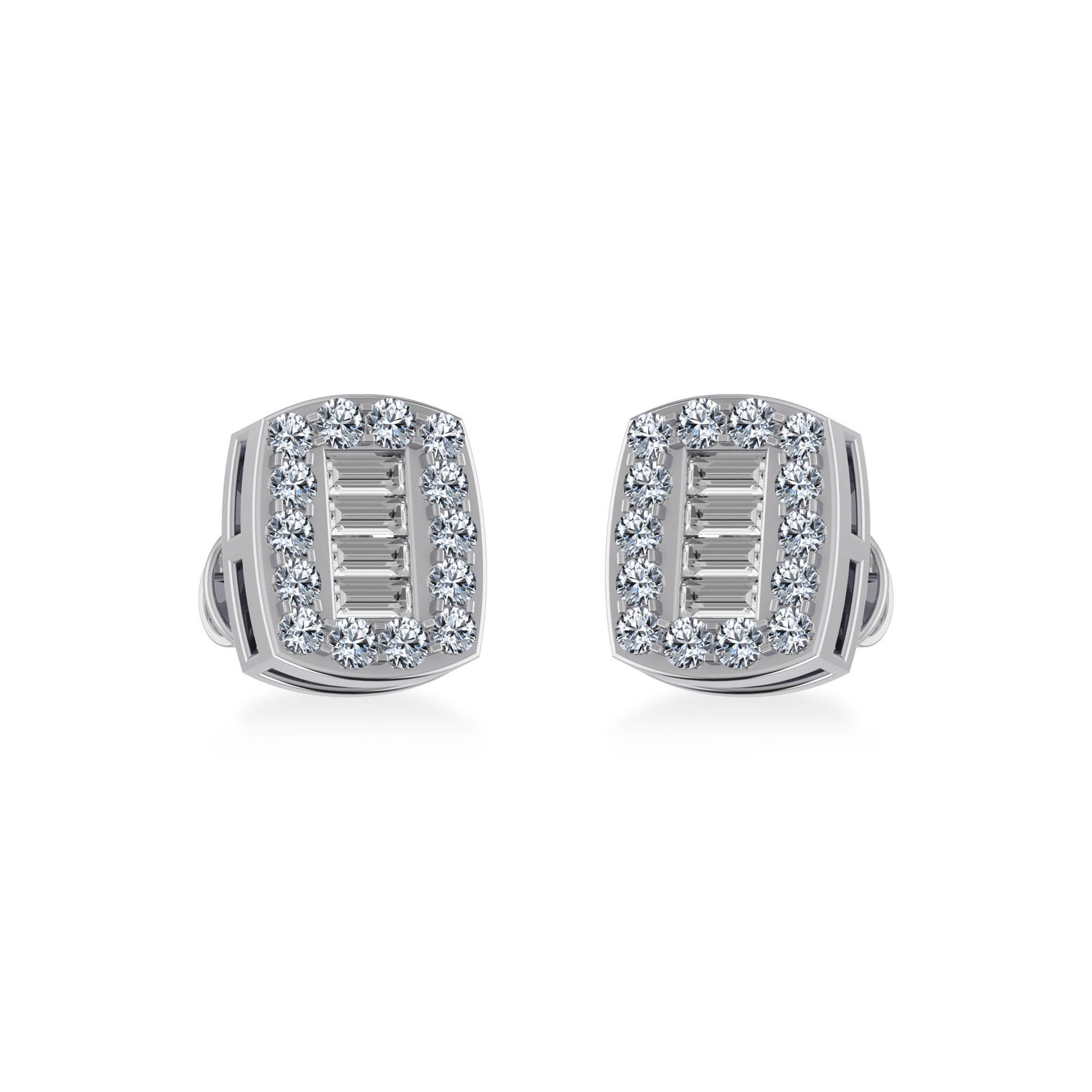14K White Gold Round Baguette Diamond Stud Earring 3/8 Cttw