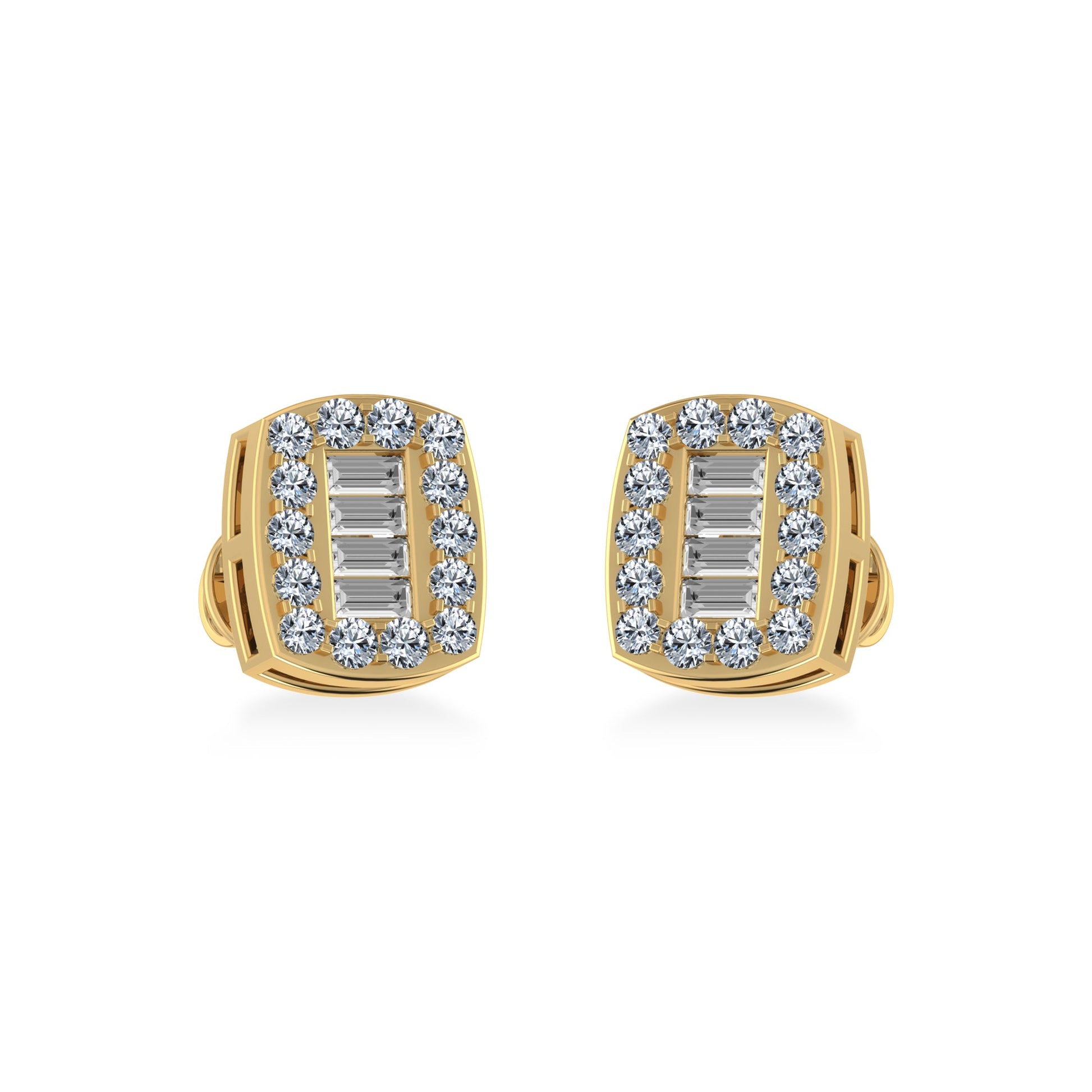 14K Yellow Gold Round Baguette Diamond Stud Earring 3/8 Cttw