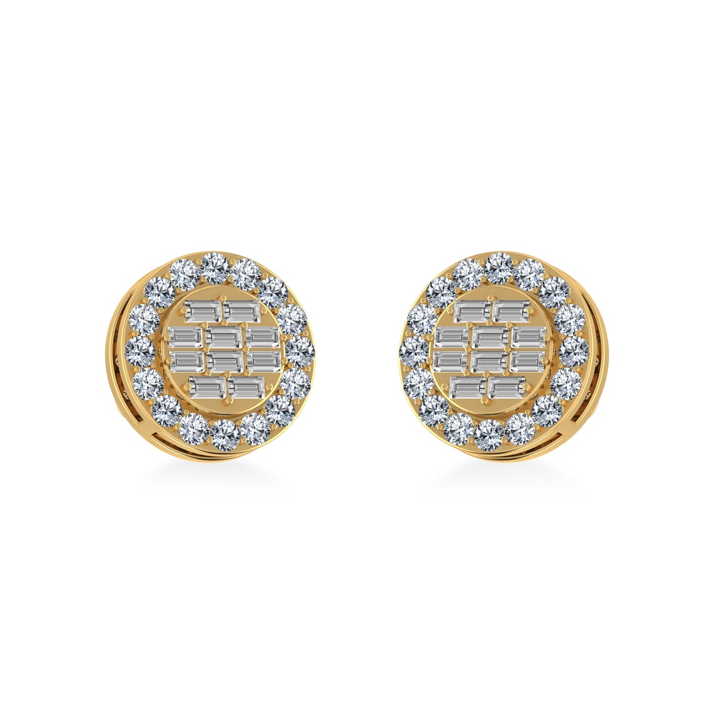 14K Yellow Gold Round Baguette Diamond Halo Stud Earrings 1/2 Cttw