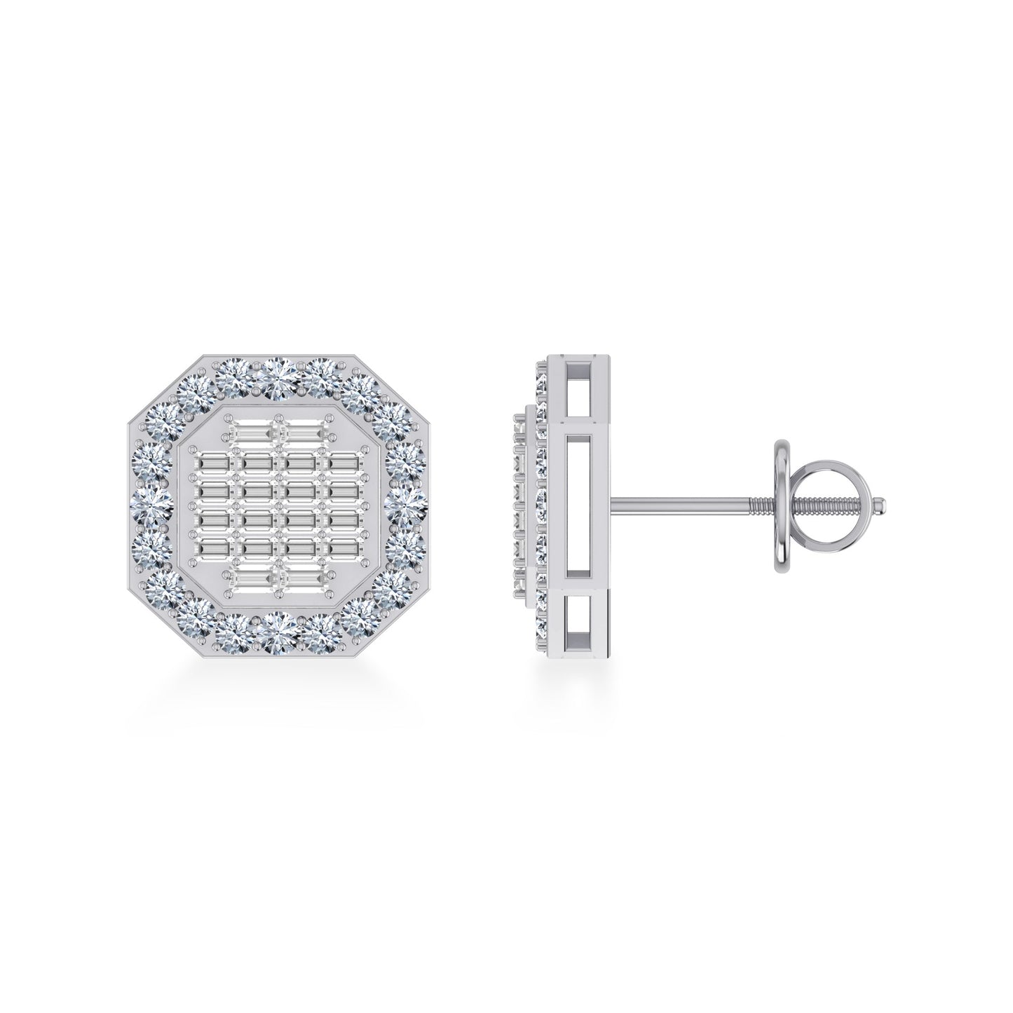 14K White Gold Round Baguette Diamond Designer Stud Earrings 7/8 Cttw