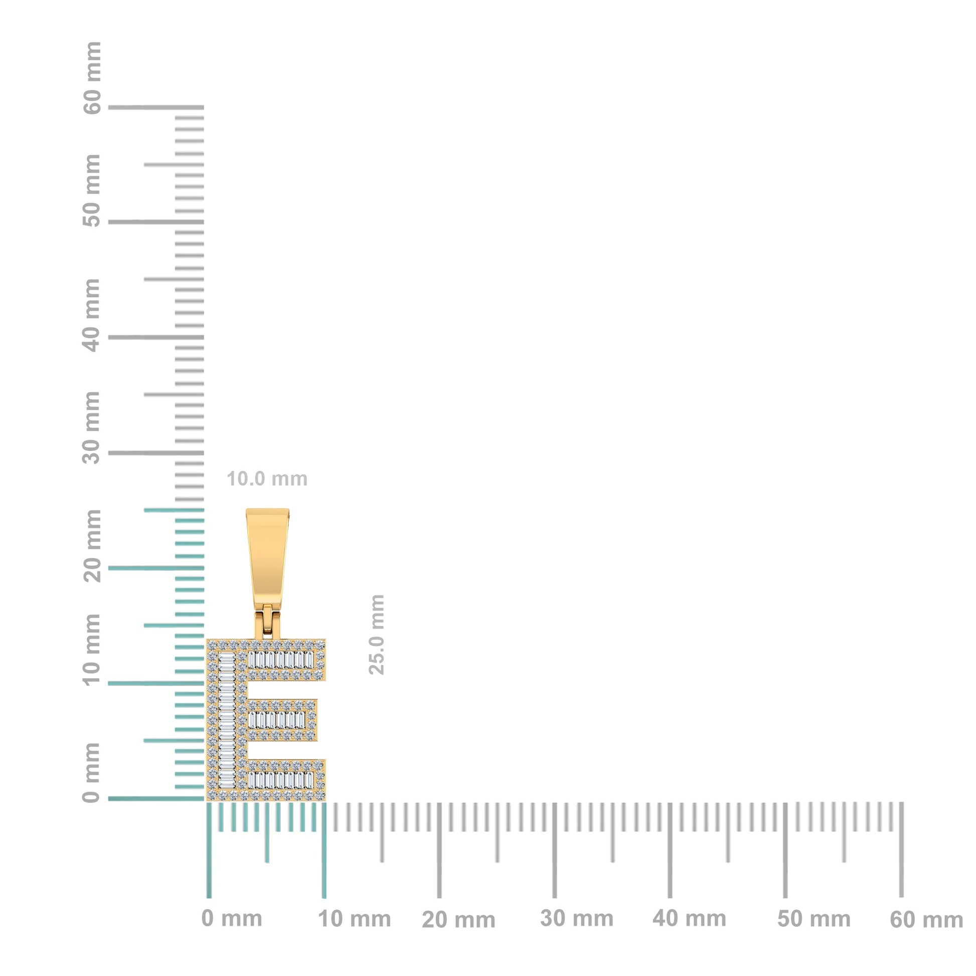 10K Yellow Gold Baguette Diamond Initial E Letter Pendant 1/2 Cttw