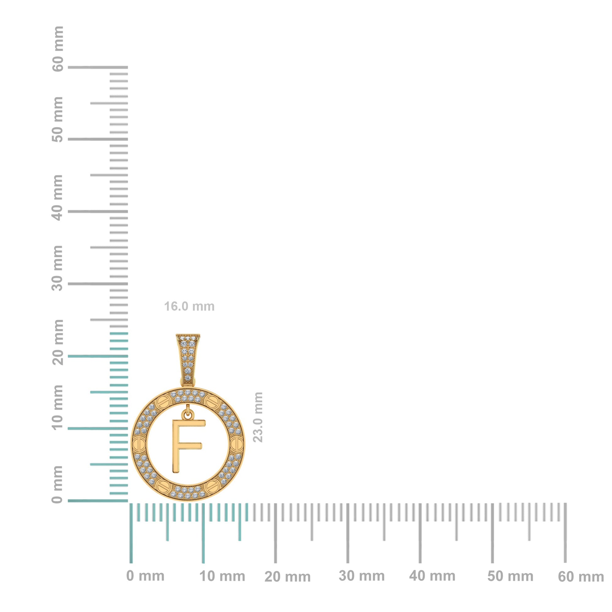10K Yellow Gold Round Diamond F Letter Initial Pendant 1/5 CTTW