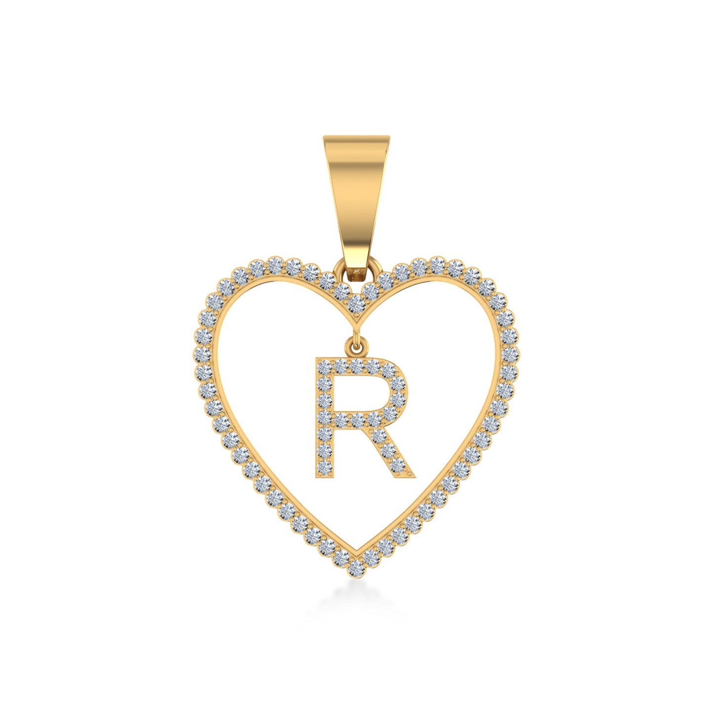 10K Yellow Gold Diamond Initial Heart R Letter Pendant 1/4 CTTW