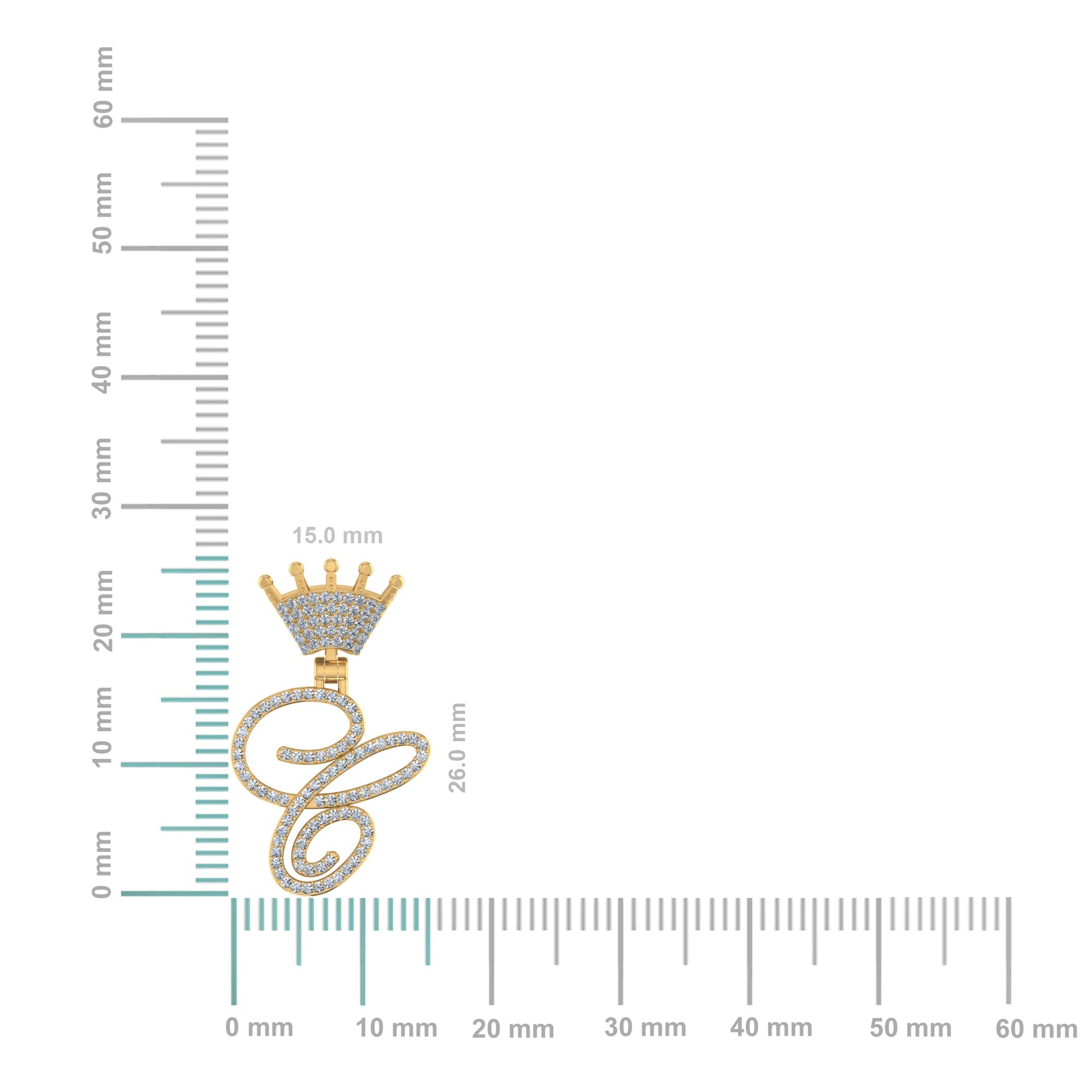 10K Yellow Gold Round Diamond Crown C Letter Initial Pendant 1/4 Cttw