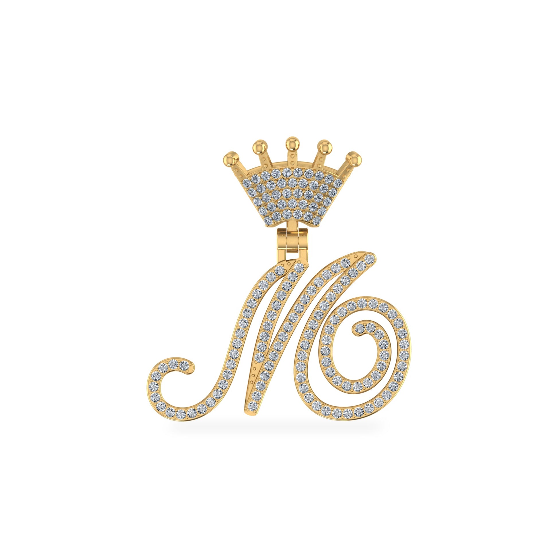 10K Yellow Gold Round Diamond Crown M Letter Initial Pendant 1/4 Cttw